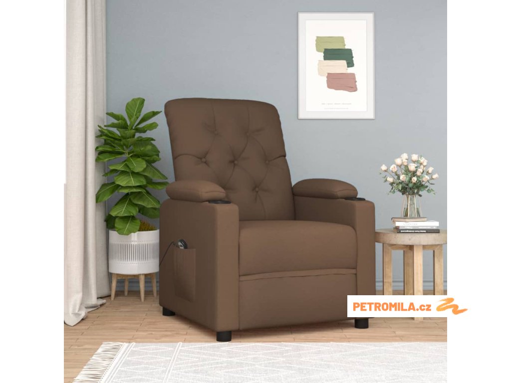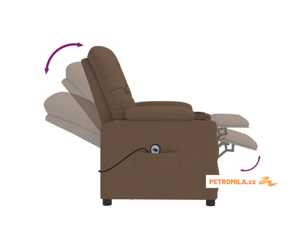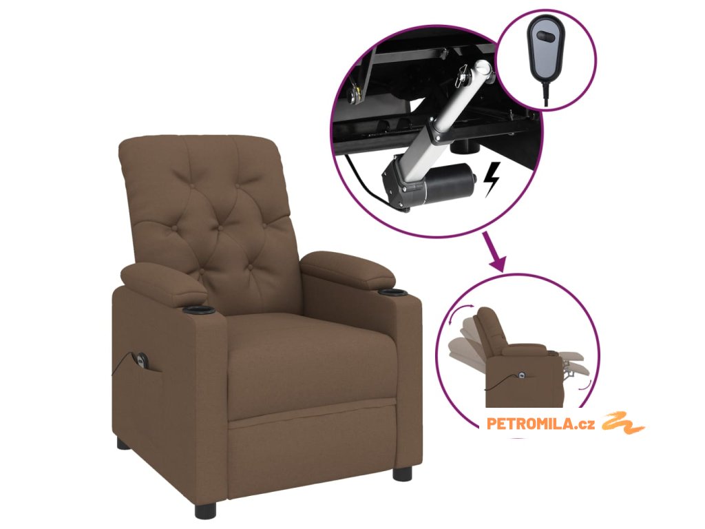 Elektrické polohovací křeslo hnědé textil