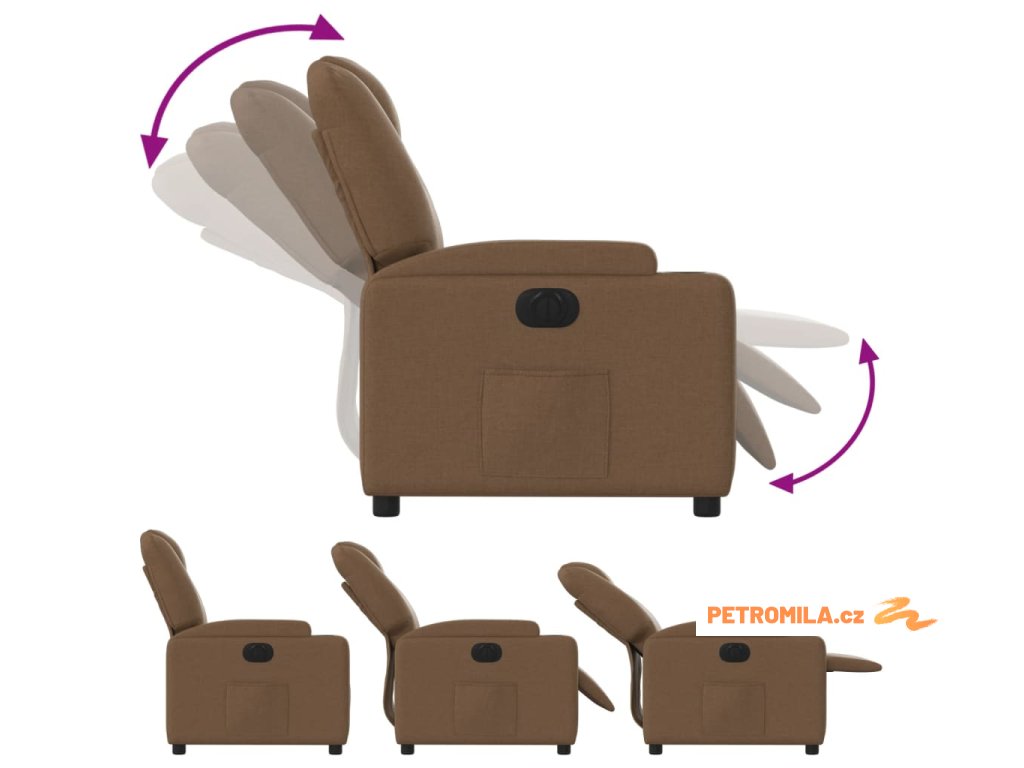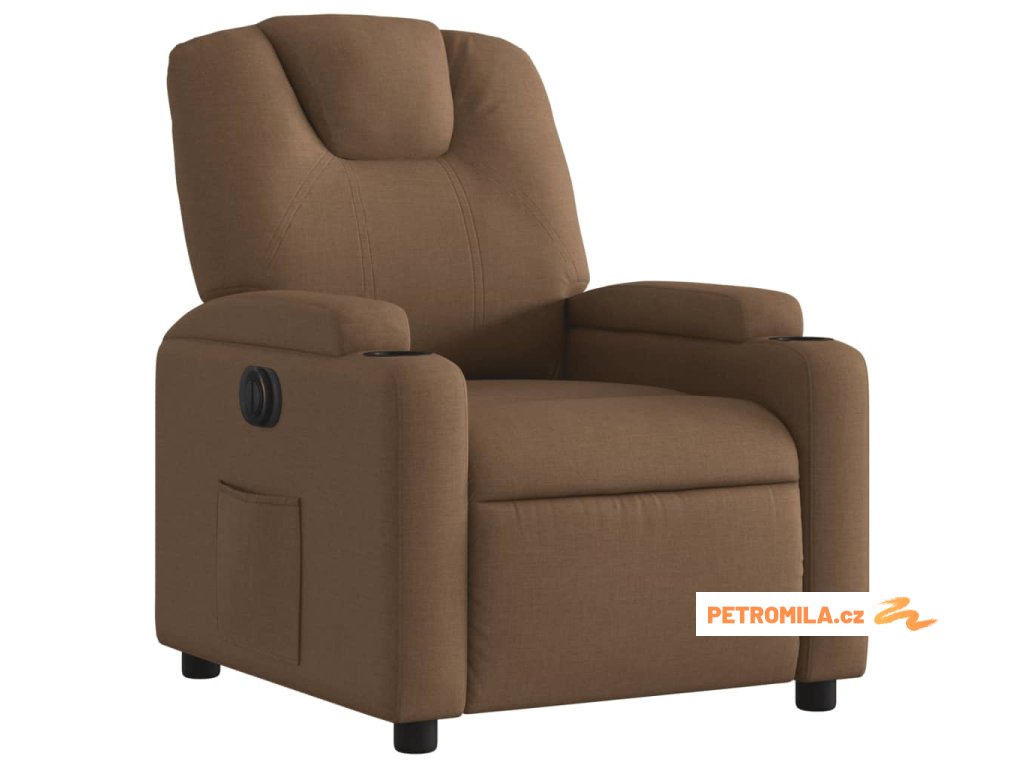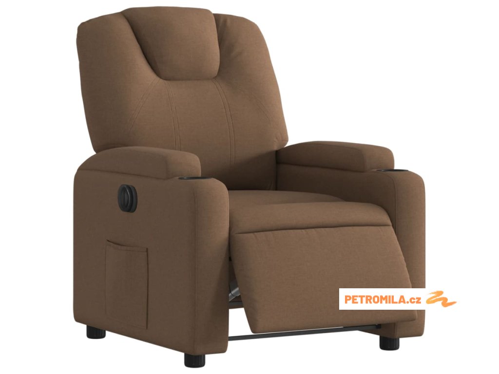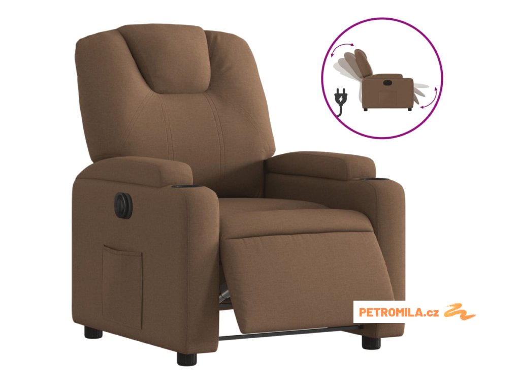 Elektrické polohovací křeslo hnědé textil