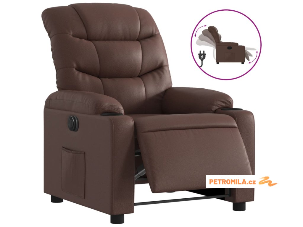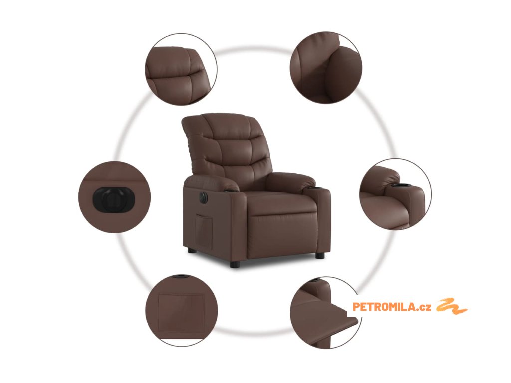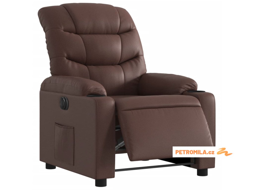 Elektrické zvedací polohovací křeslo hnědé umělá kůže