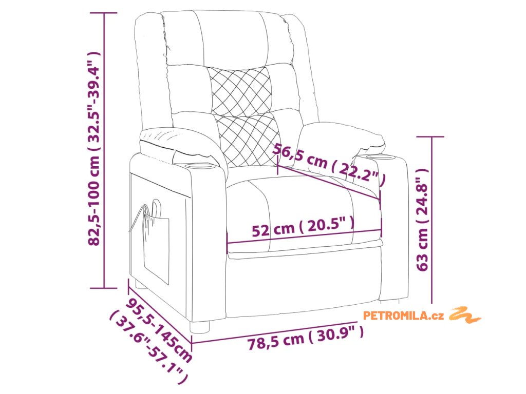 - Rozměry sklopeného křesla: 78,5 x 145 x 82,5 cm (Š x H x V)