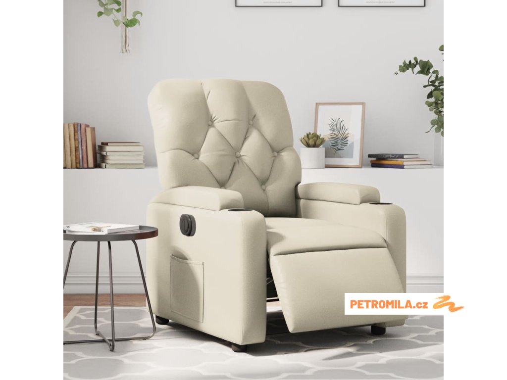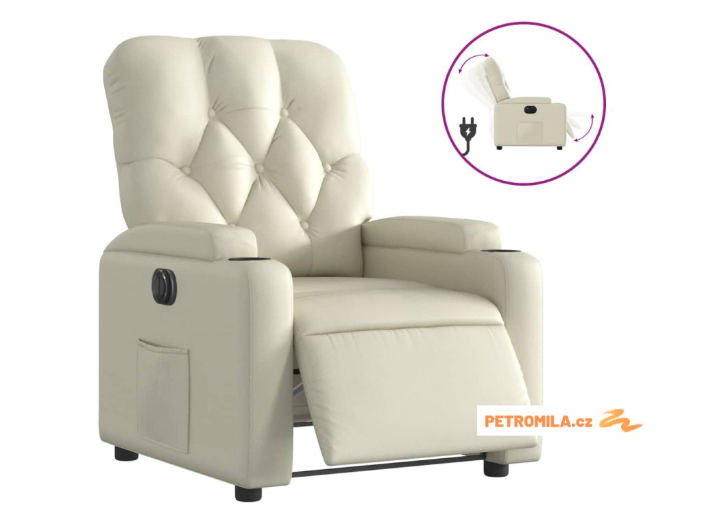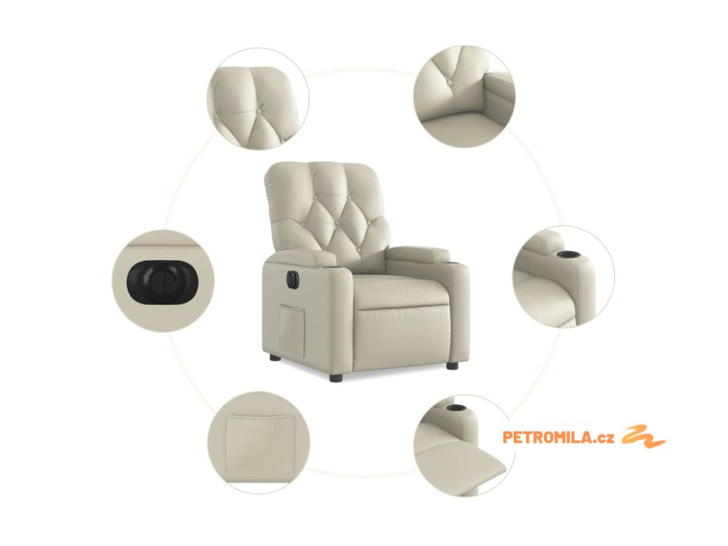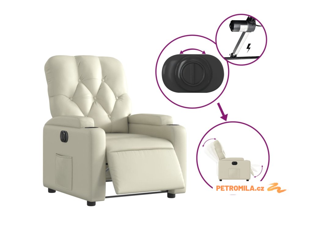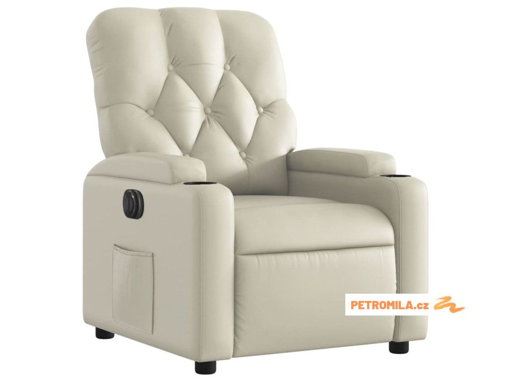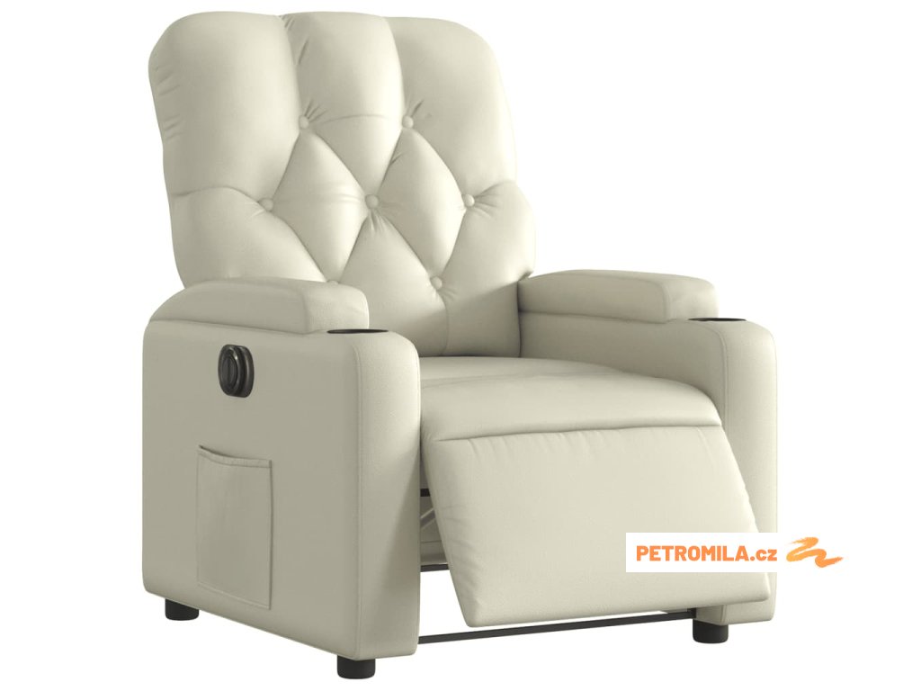 Elektrické zvedací polohovací křeslo krémové umělá kůže