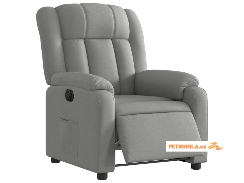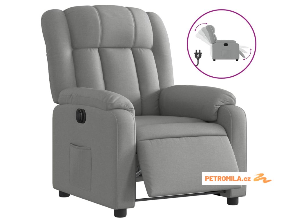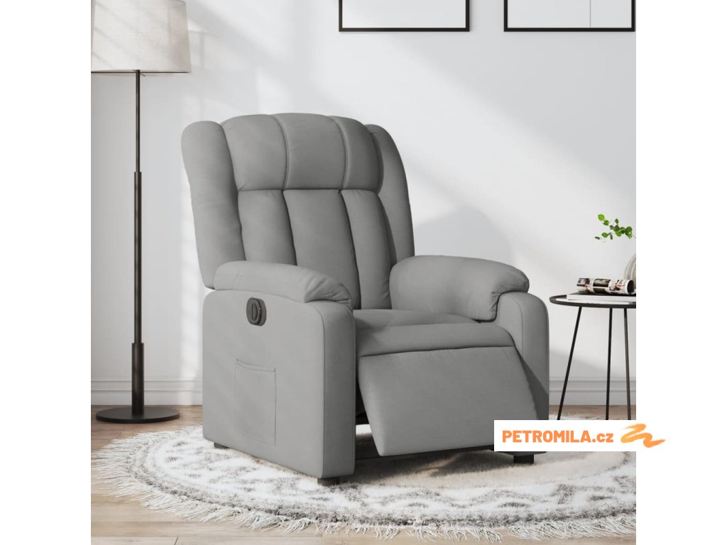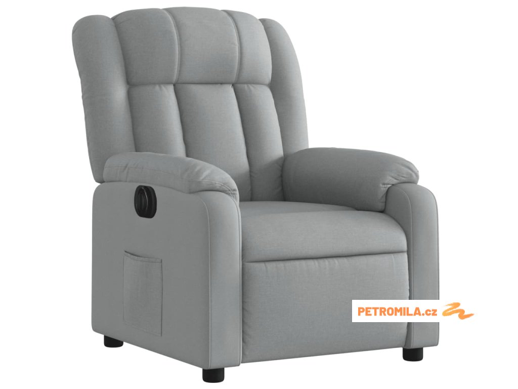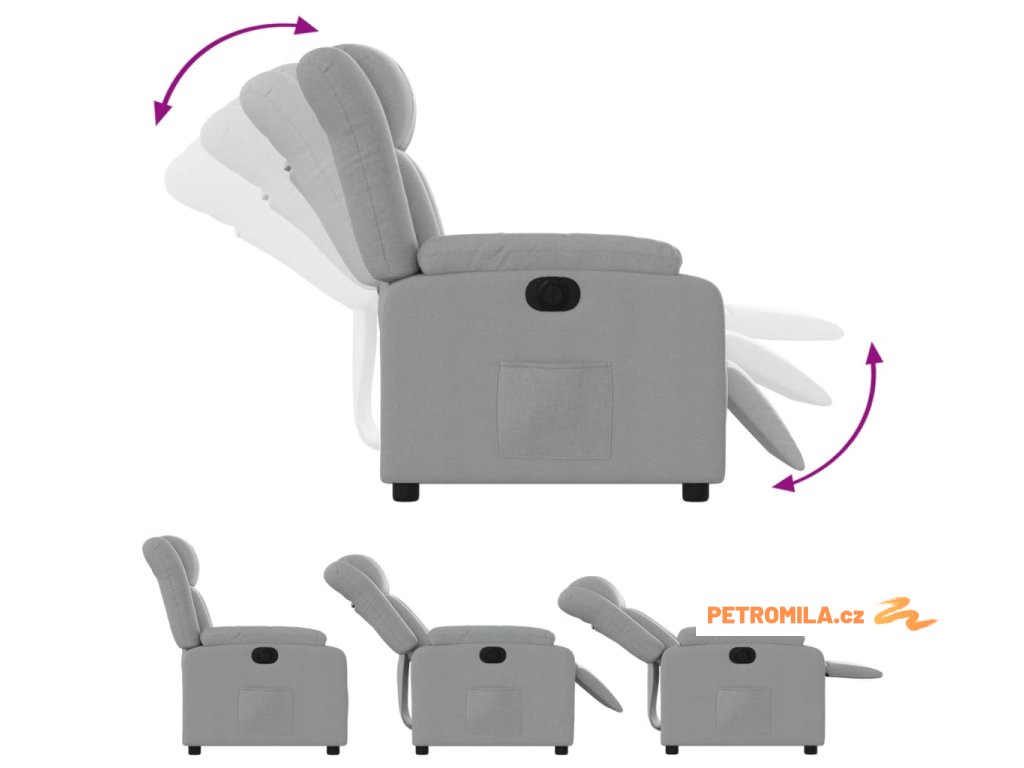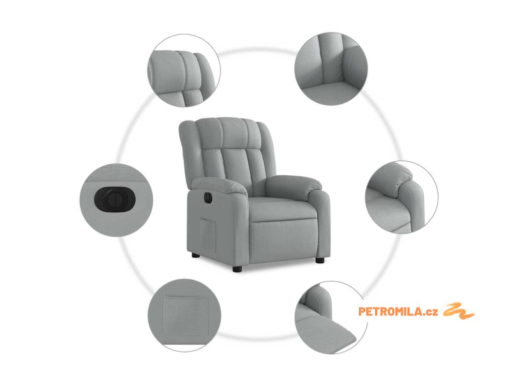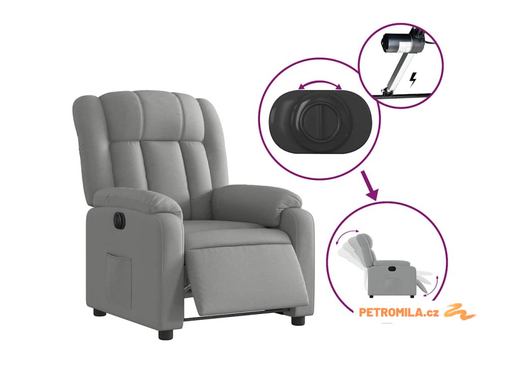 Elektrické zvedací polohovací křeslo světle šedé samet