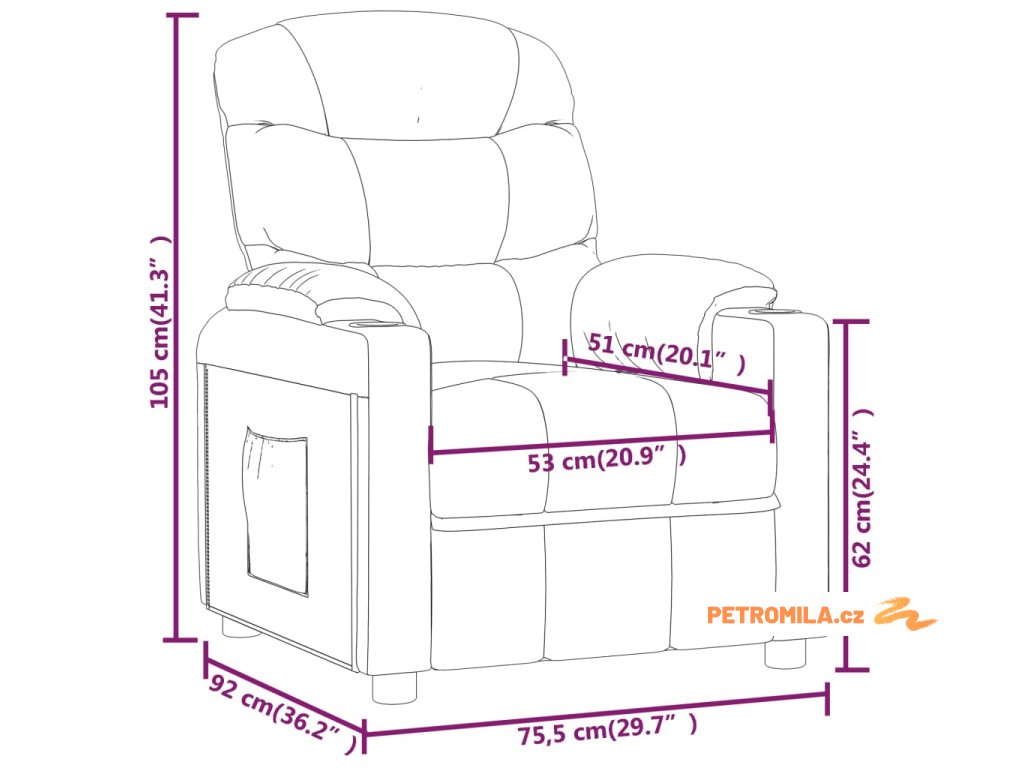 - Rozměry sedáku: 75,5 x 92 x 105 cm (Š x H x V)