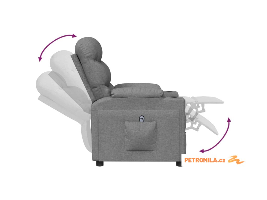 - Elektrická polohovací funkce: Polohovací křeslo je vybaveno elektromotorem pro funkci naklápění. Má 3 polohy naklápění, takže si můžete snadno nastavit opěradlo a podnožku pomocí přiloženého dvoutlačítkového ovladače, jak vám to bude nejlépe vyhovovat.