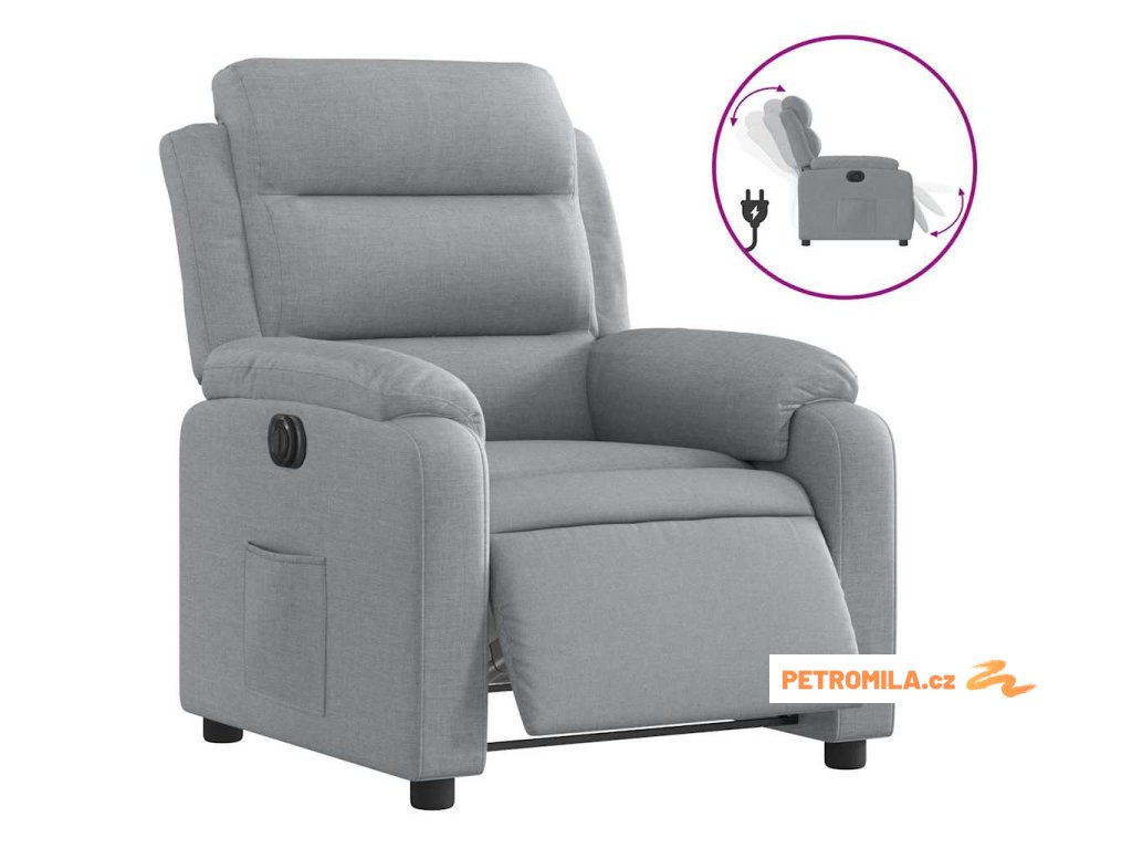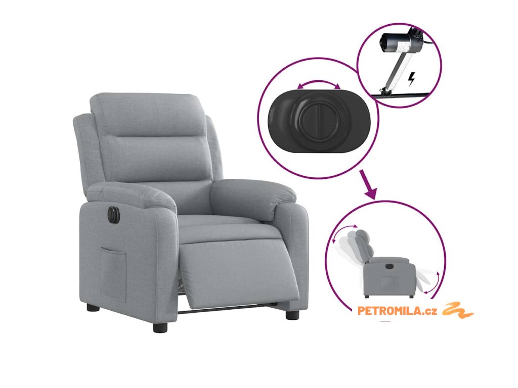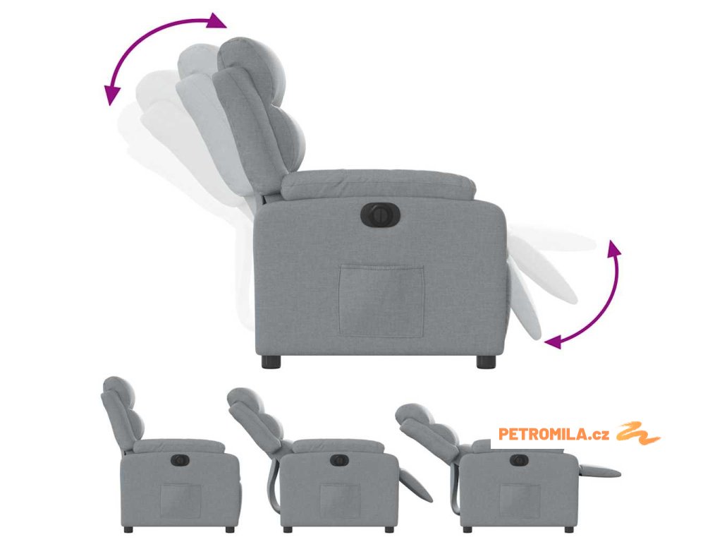 - Funkce elektrického sklápění: Toto polohovací křeslo je vybaveno elektromotorem. Jednoduchým stisknutím tlačítka na boku křesla můžete automaticky nastavit opěrku nohou a opěradlo do libovolné polohy tak, abyste se cítili pohodlně. Tato funkce umožňuje maximální náklon 135 stupňů. Opěradlo se navíc může jednoduchým stisknutím tlačítka automaticky vrátit do původní polohy.