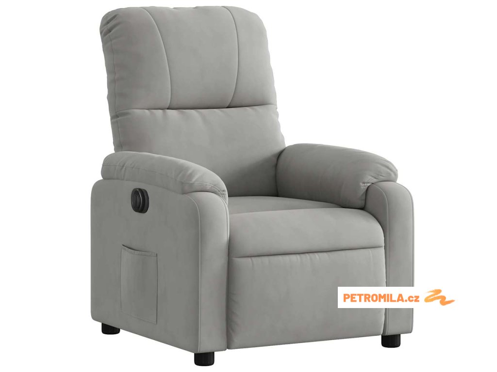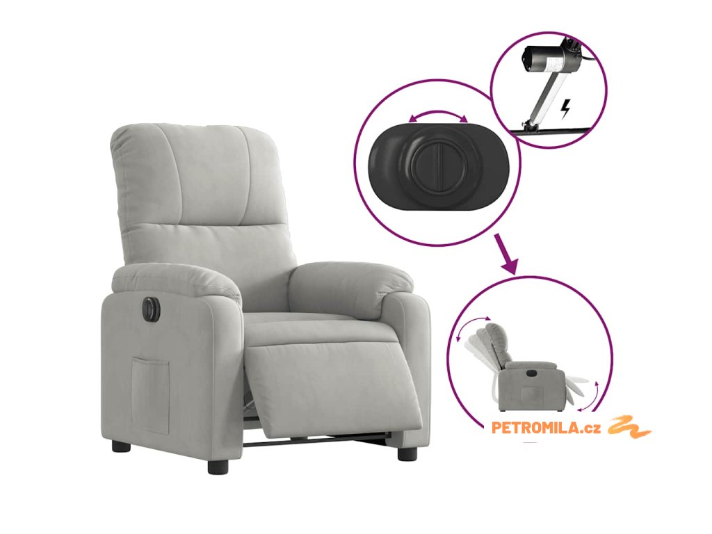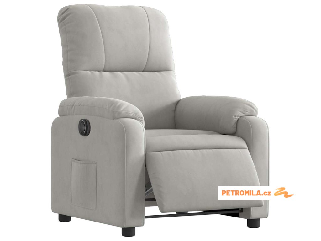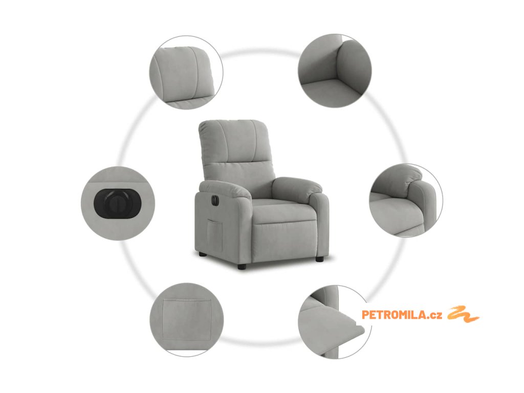 Elektrické zvedací masážní polohovací křeslo světle šedé samet