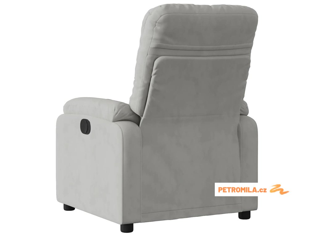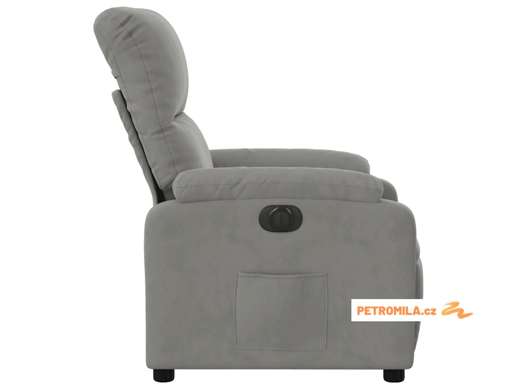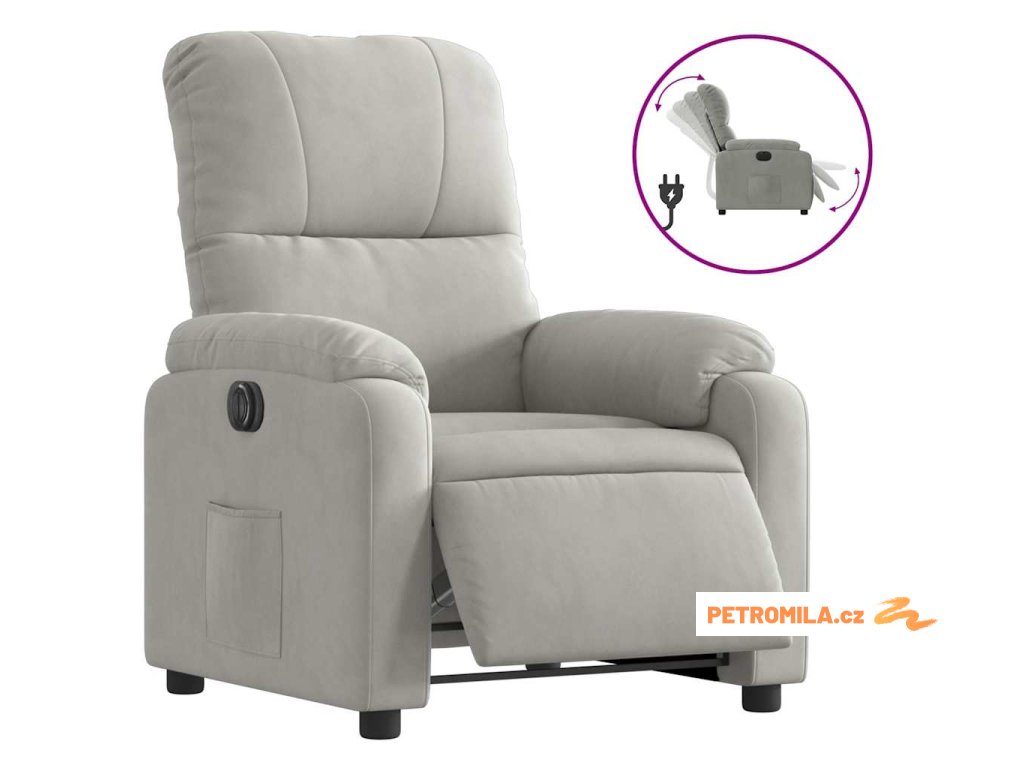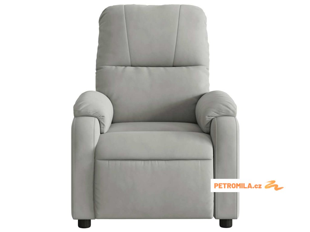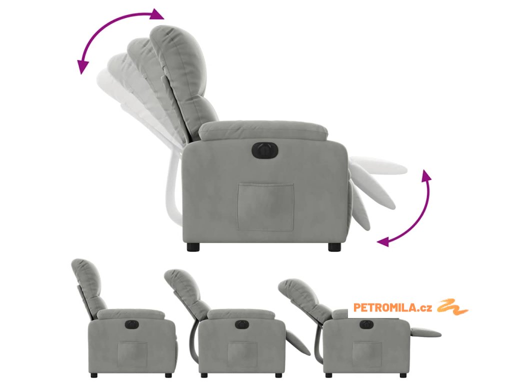 Elektrické zvedací masážní polohovací křeslo světle šedé samet