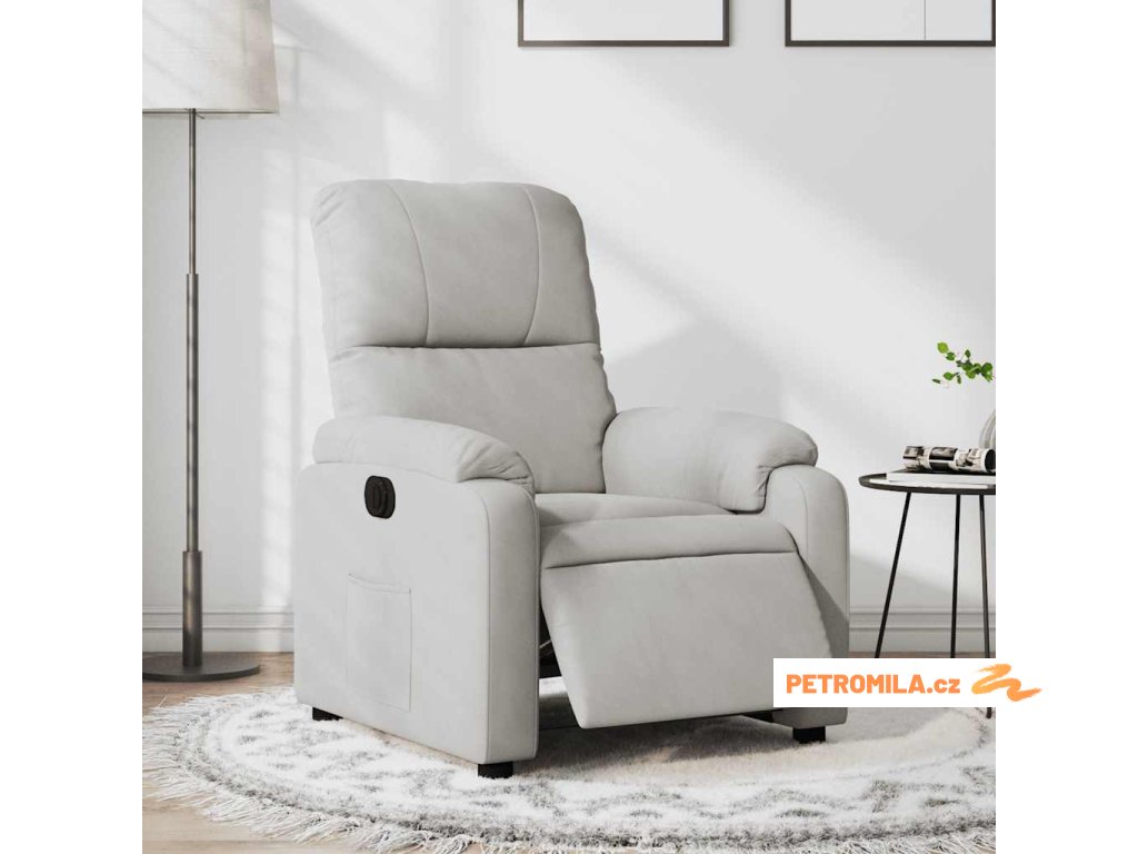 Elektrické polohovací křeslo světle šedé tkanina z mikrovlákna