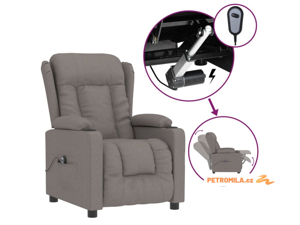 Elektrické polohovací křeslo taupe textil