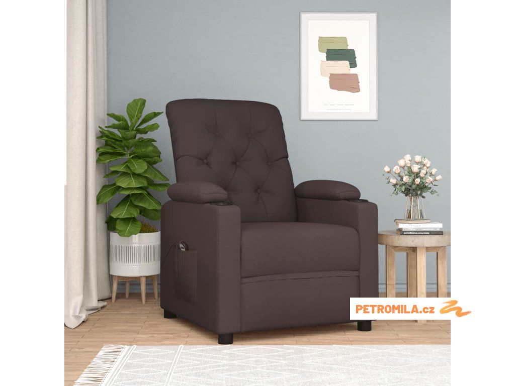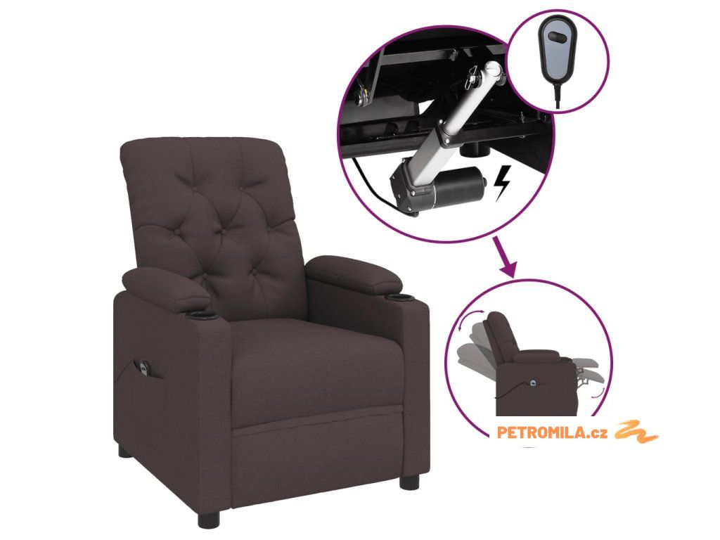 Elektrické polohovací křeslo tmavě hnědé textil