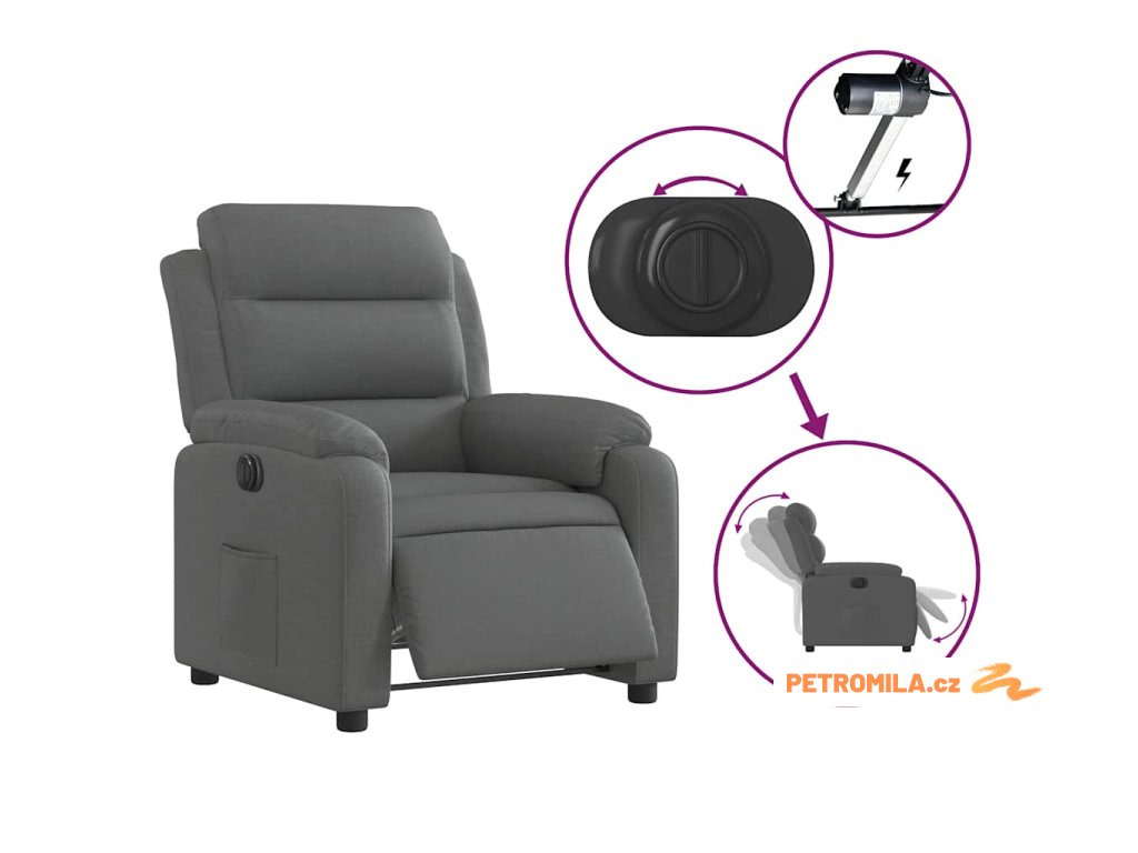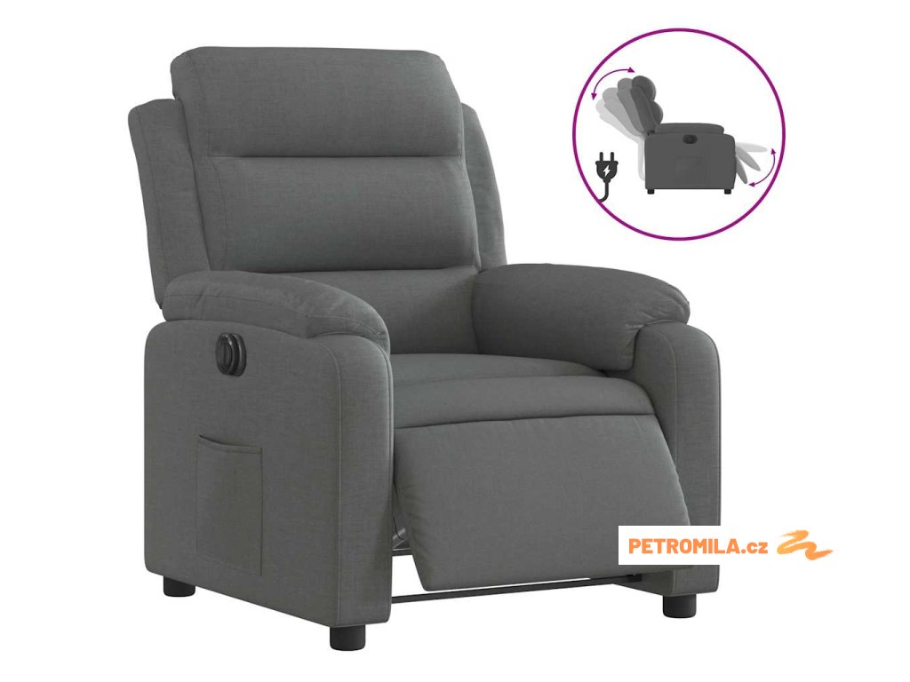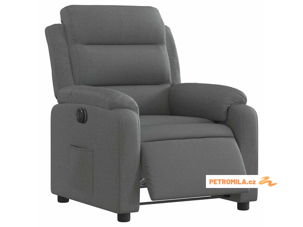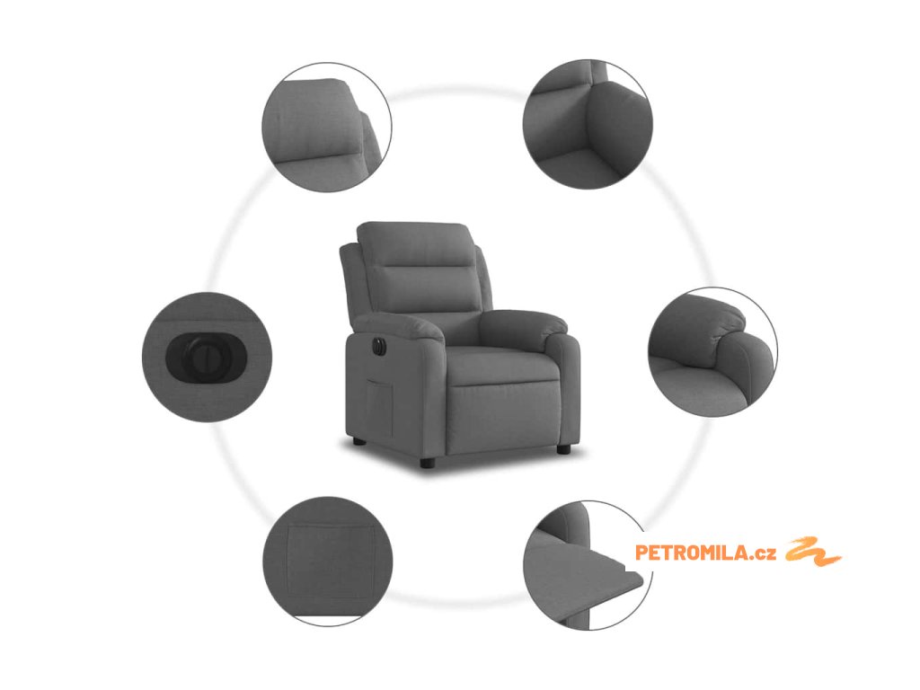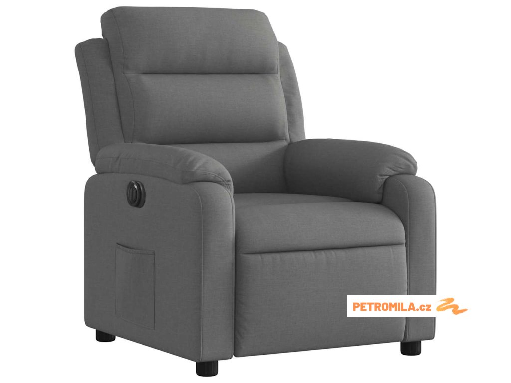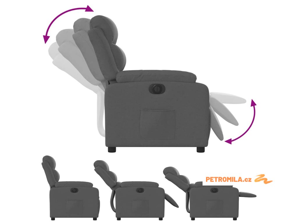 Elektrické zvedací masážní polohovací křeslo tmavě šedé textil