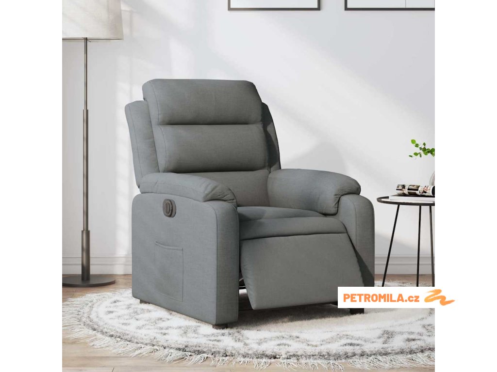 Elektrické zvedací masážní polohovací křeslo světle šedé textil