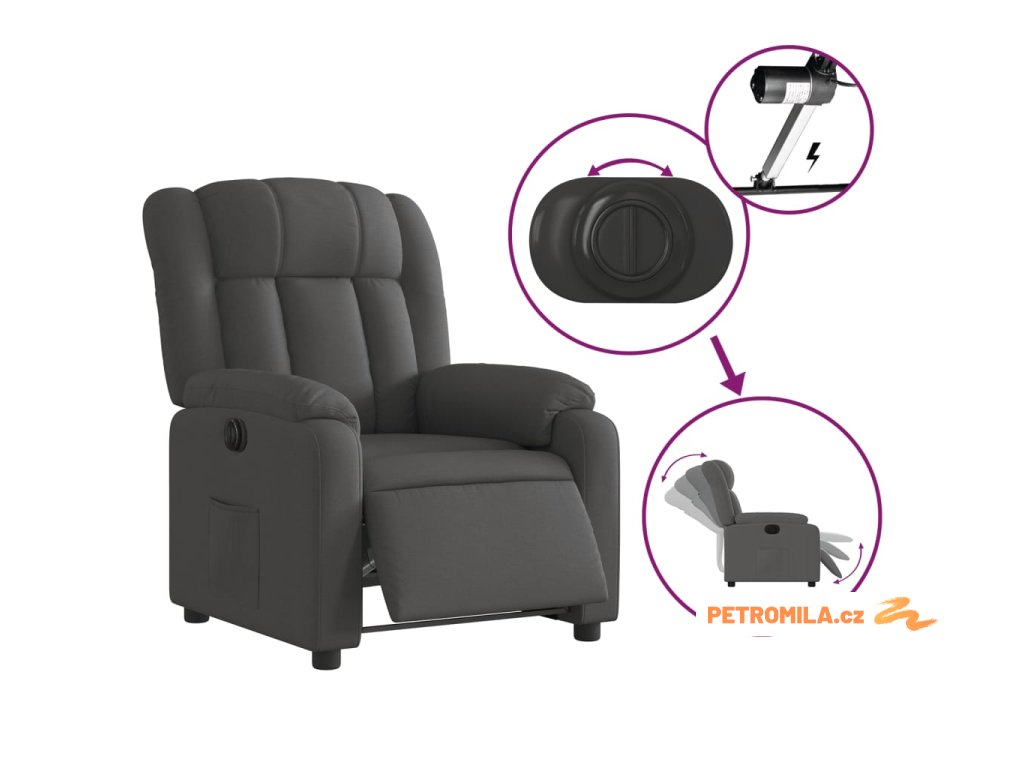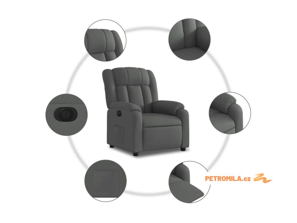 Zvedací masážní polohovací křeslo šedé umělá kůže