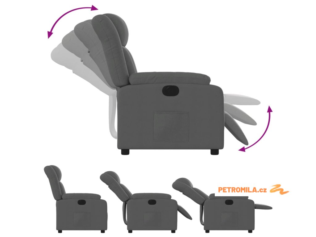 Relaxační křeslo se stoličkou tmavě šedé textil