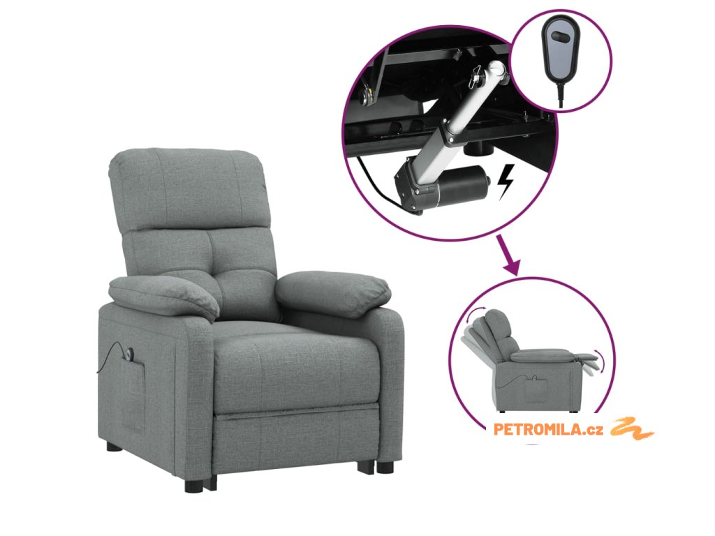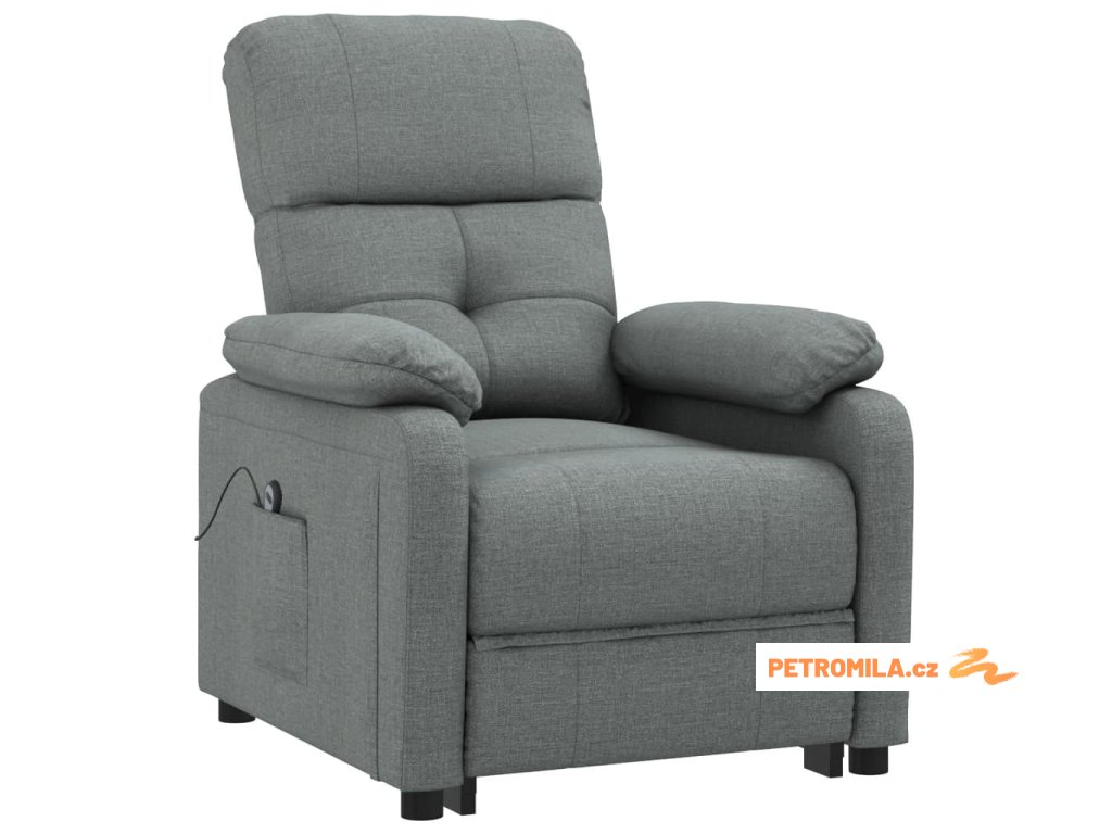 Elektrické zvedací masážní polohovací křeslo tmavě šedé textil