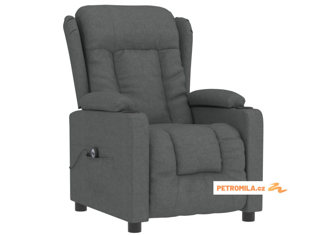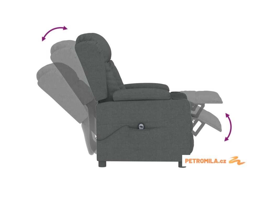 Elektrické zvedací masážní polohovací křeslo světle šedé samet