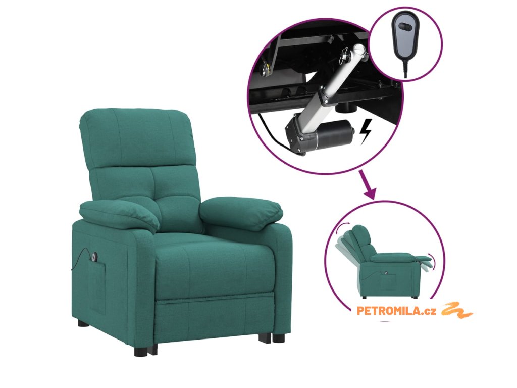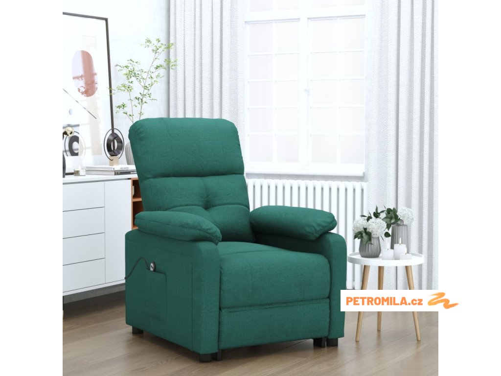 Elektrické polohovací křeslo tmavě zelené textil
