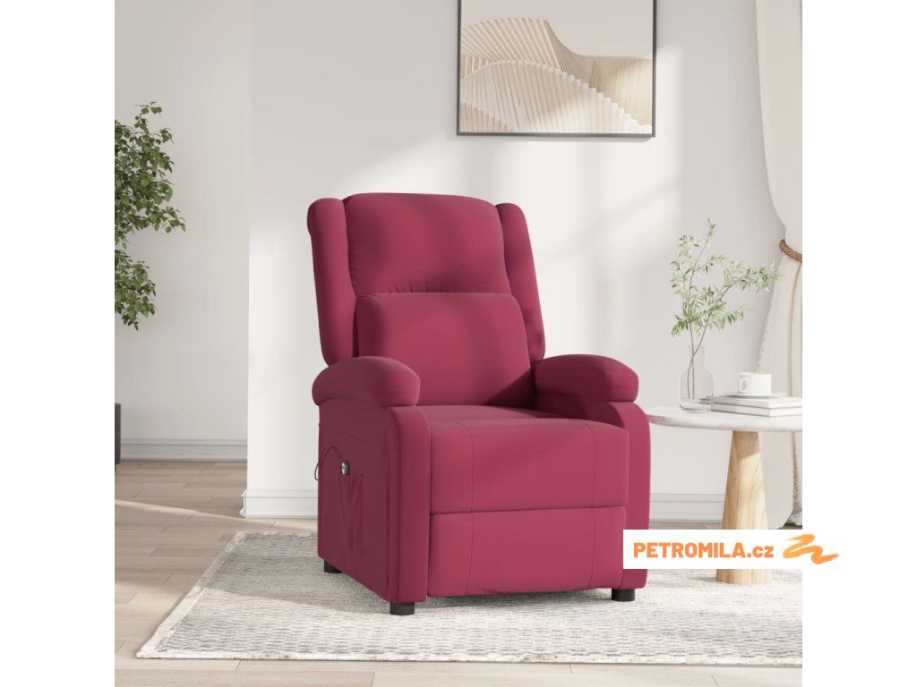 Elektrické polohovací křeslo vínové samet