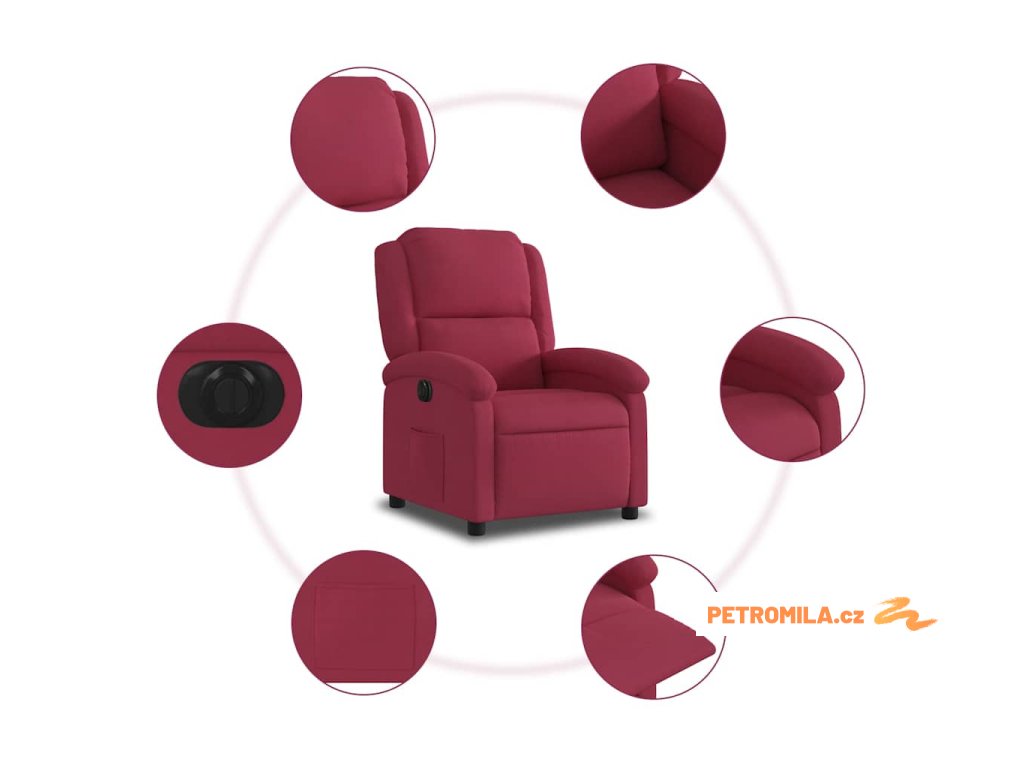 Elektrické zvedací polohovací křeslo vínové umělá kůže