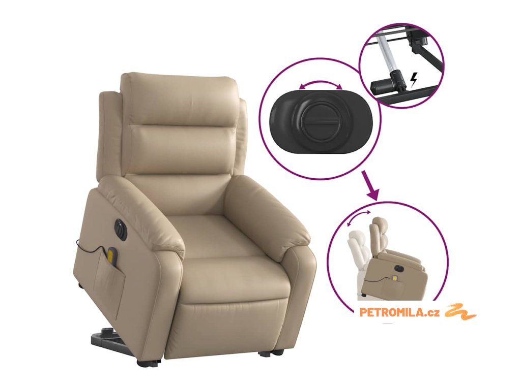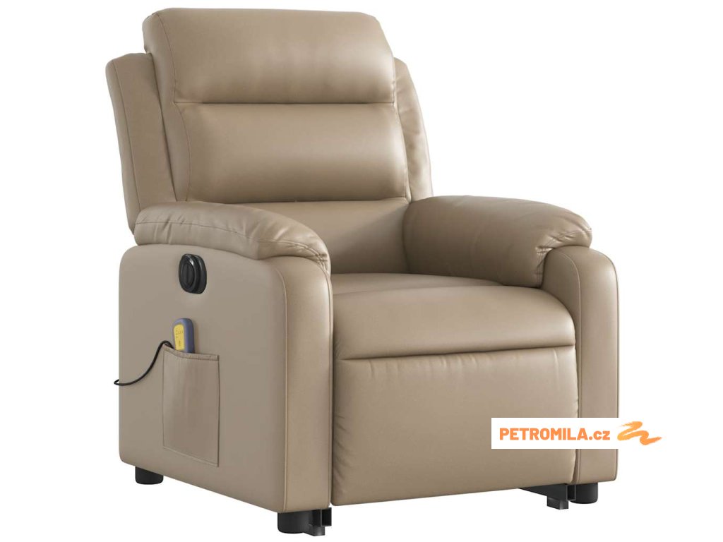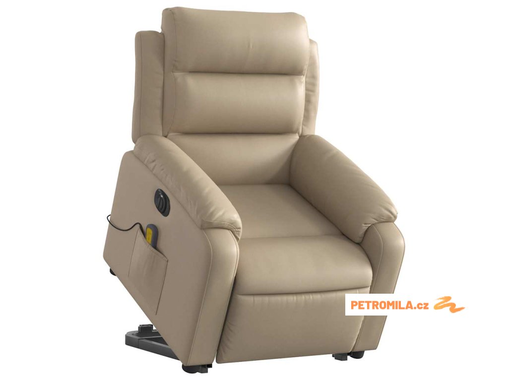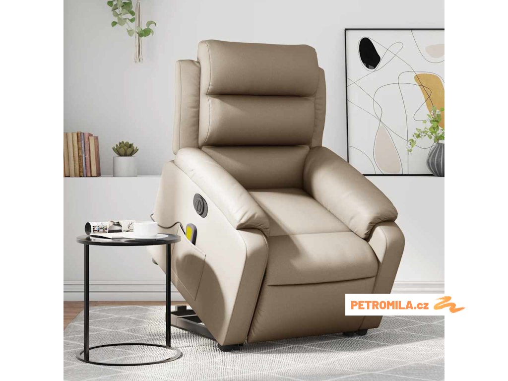 Elektrické zvedací masážní polohovací křeslo cappuccino koženka