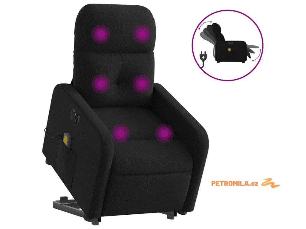 Elektrické zvedací masážní polohovací křeslo černé textil