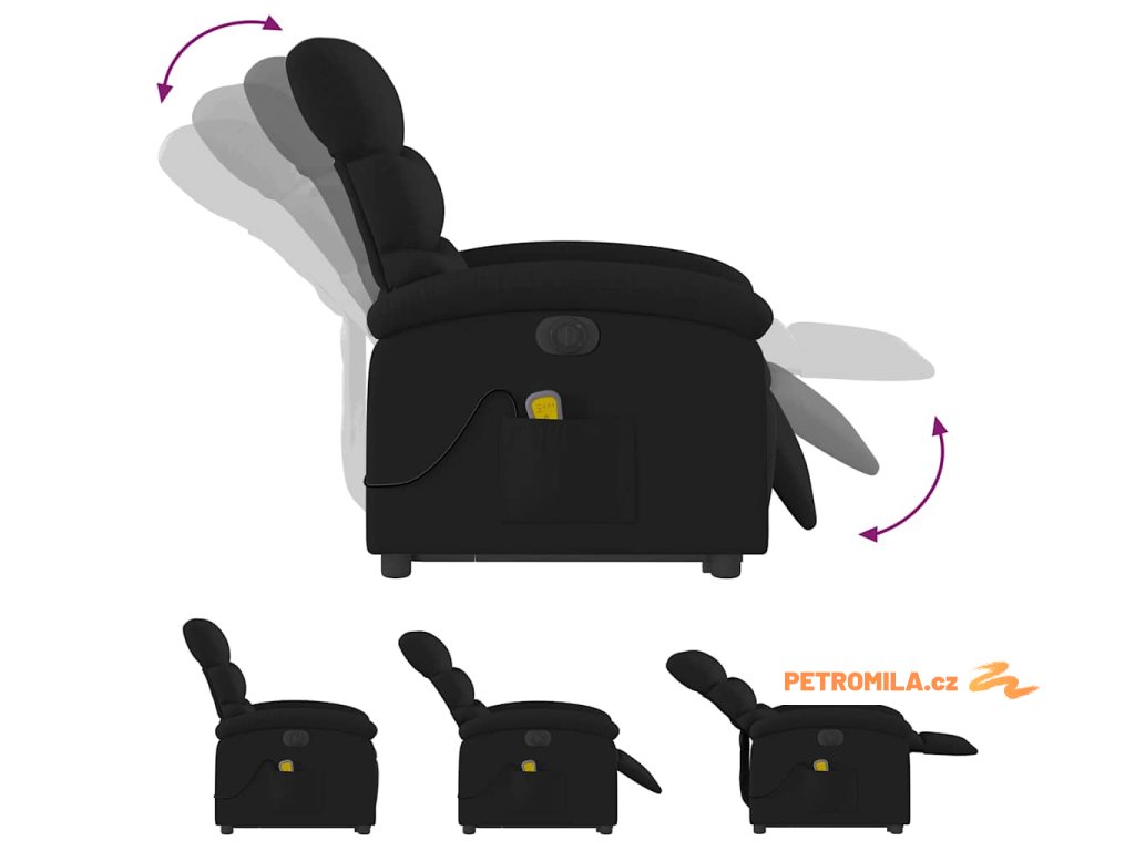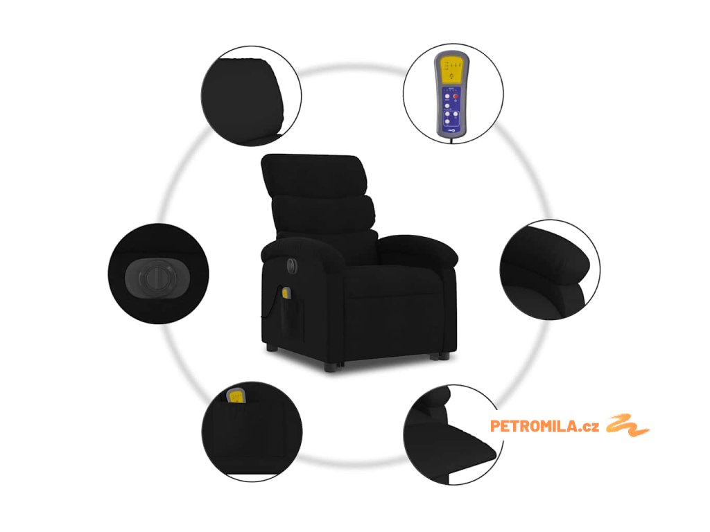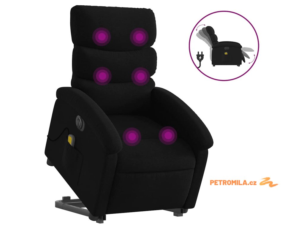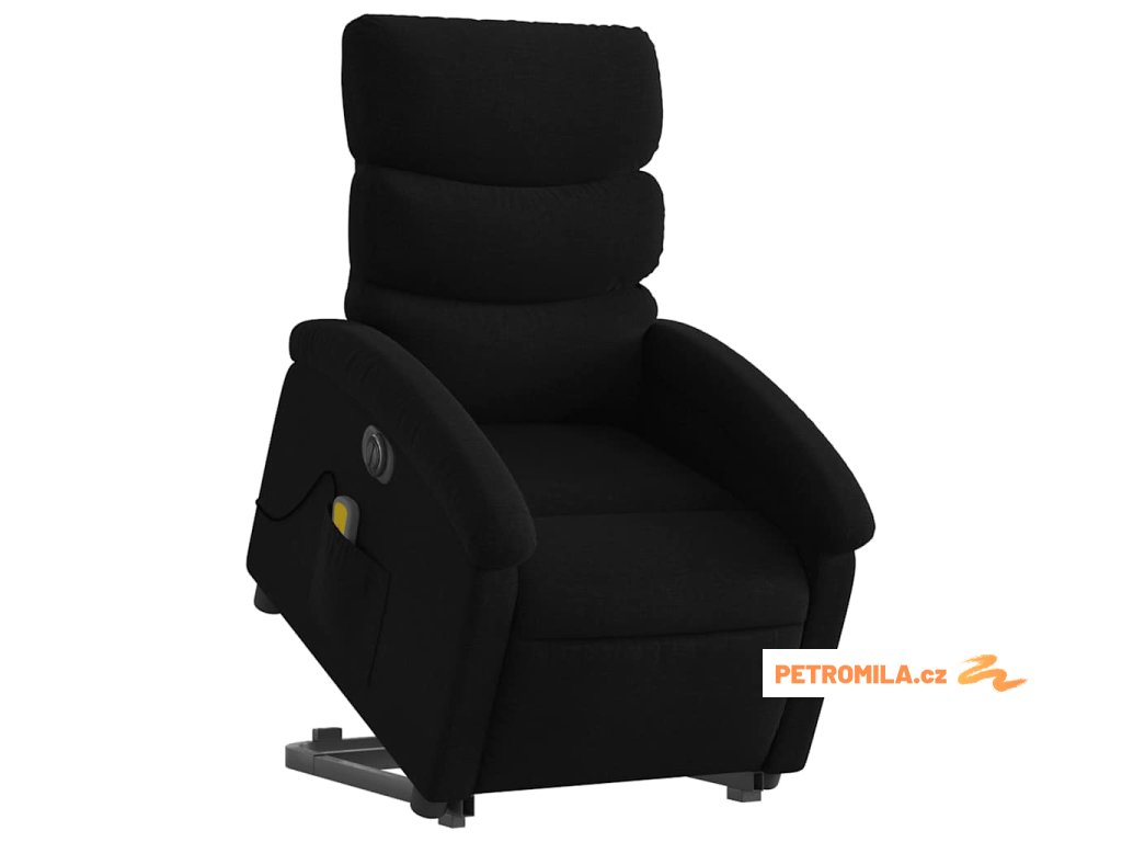 Elektrické zvedací masážní polohovací křeslo černé textil