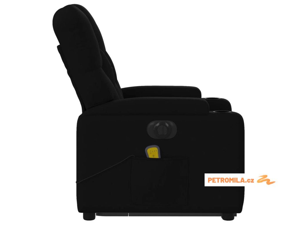 Elektrické zvedací masážní polohovací křeslo černé textil