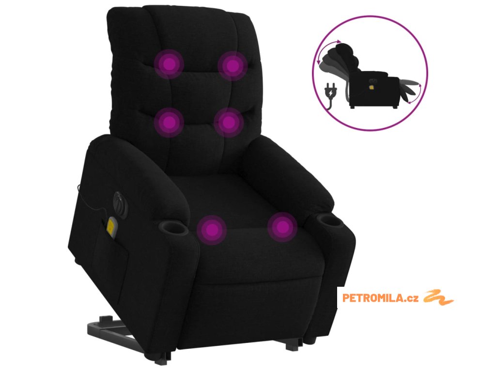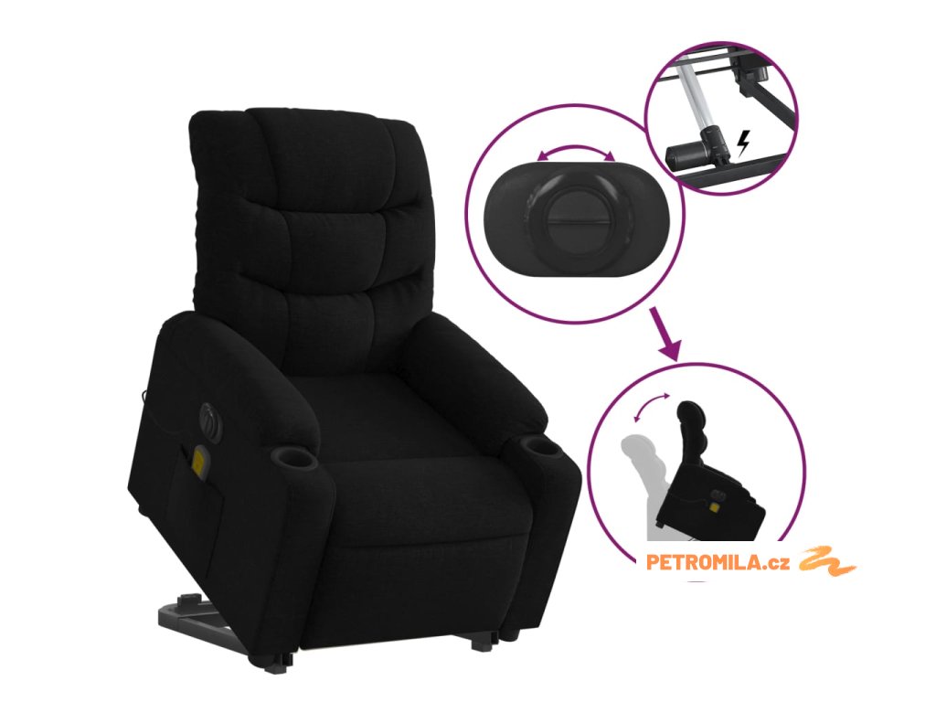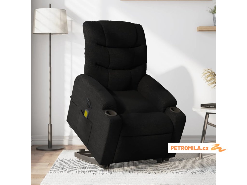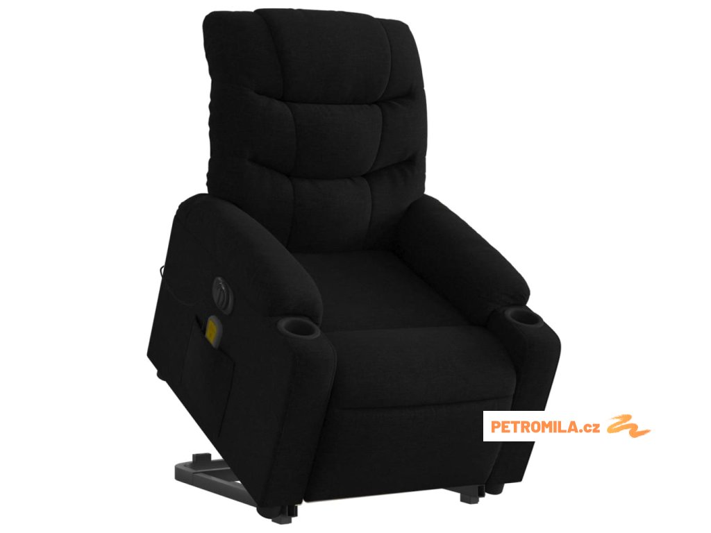 Elektrické zvedací masážní polohovací křeslo černé textil