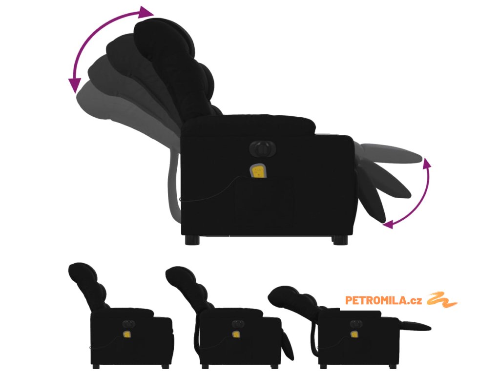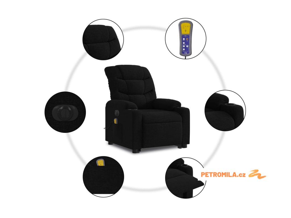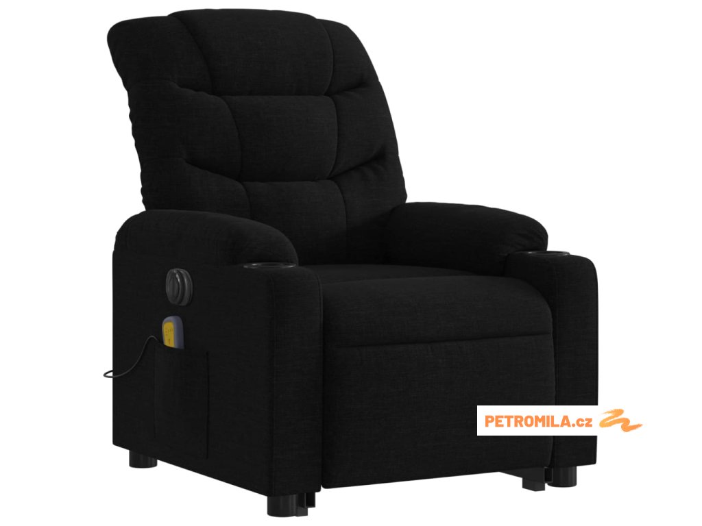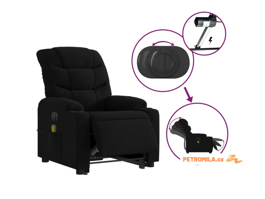 Elektrické zvedací masážní polohovací křeslo černé textil