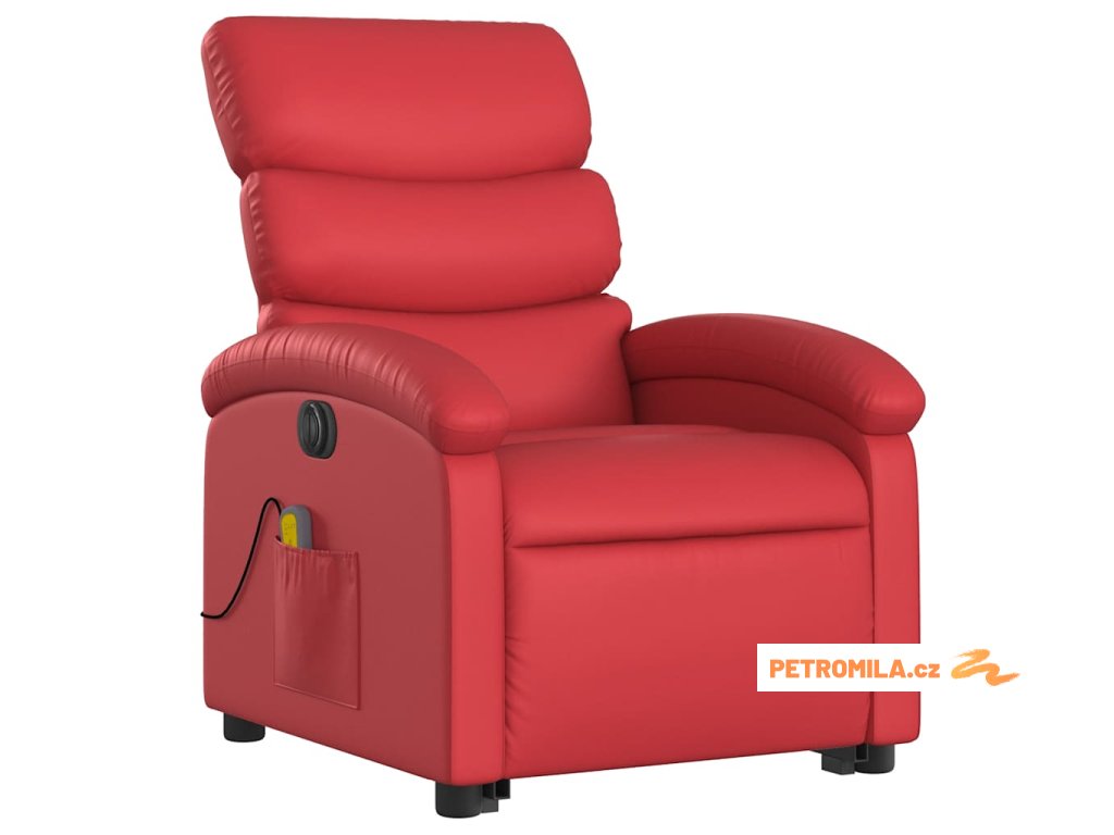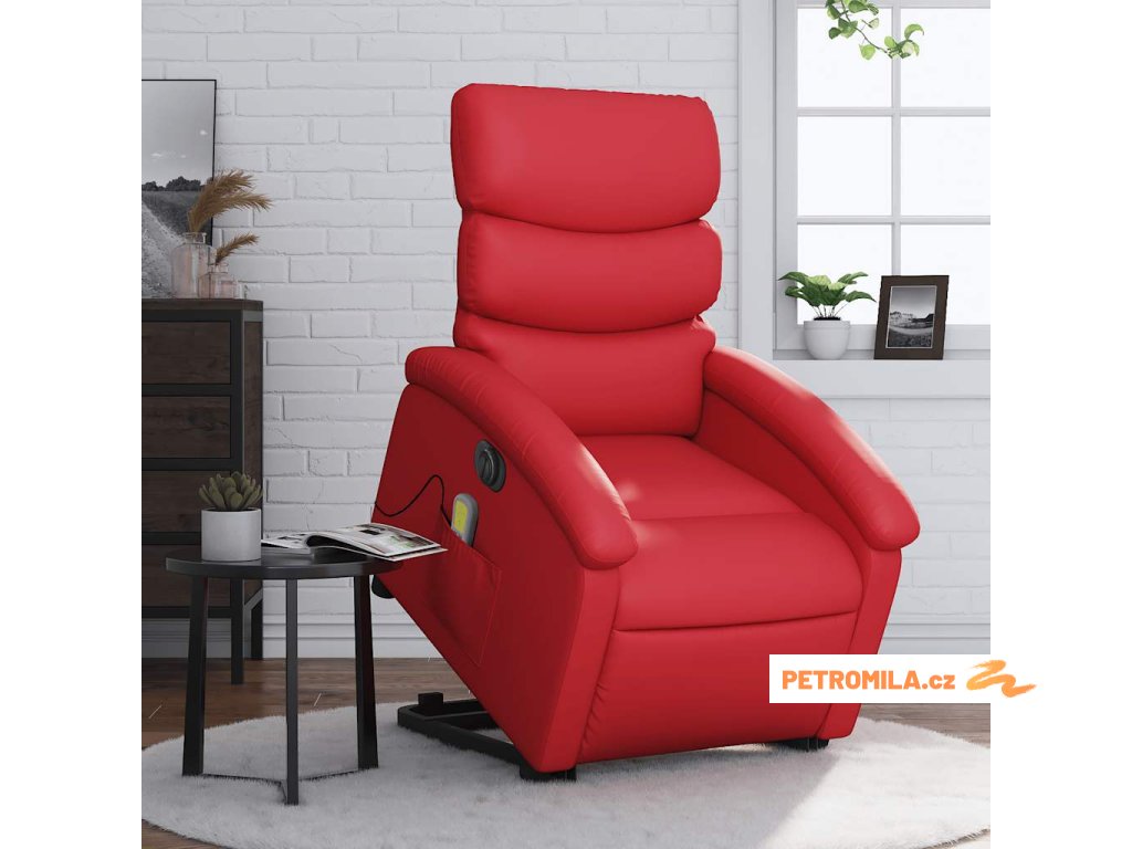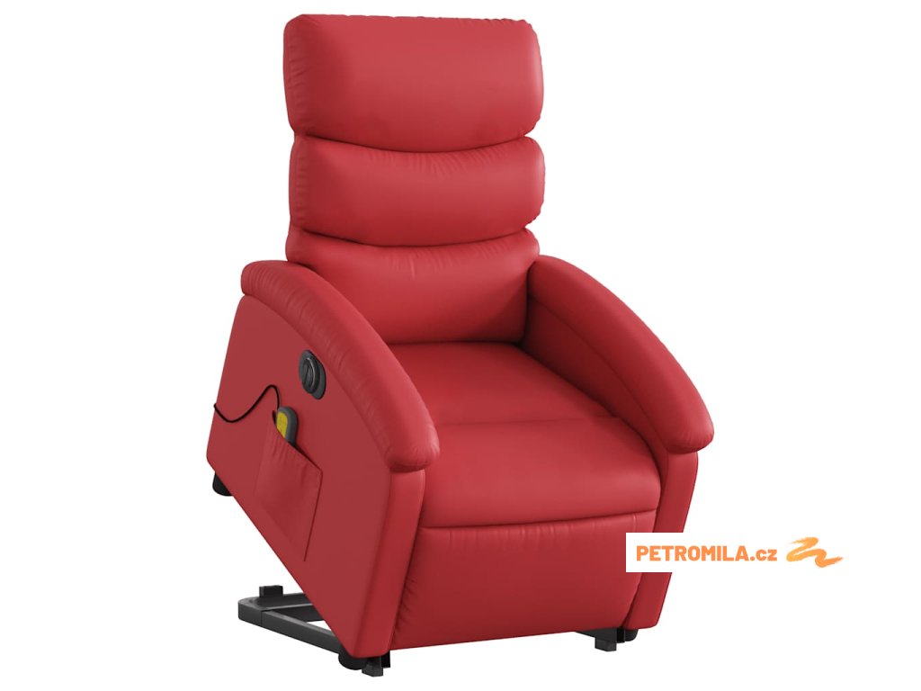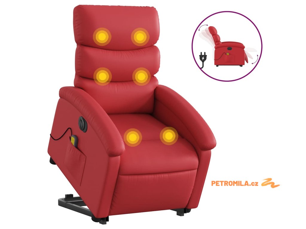 Elektrické zvedací masážní polohovací křeslo červené umělá kůže