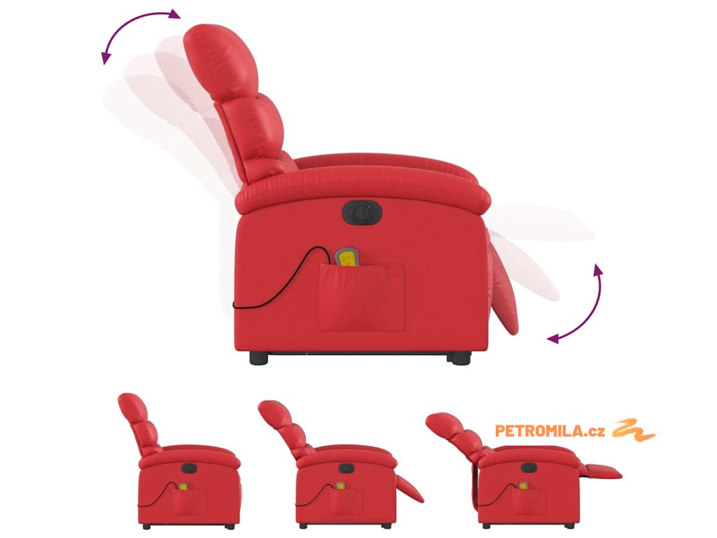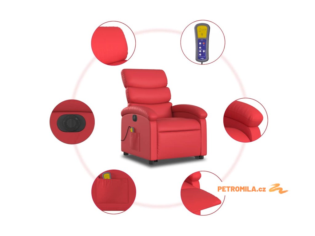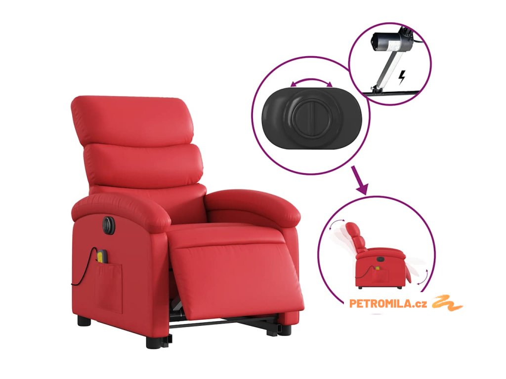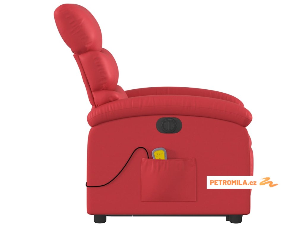 Elektrické zvedací masážní polohovací křeslo červené umělá kůže