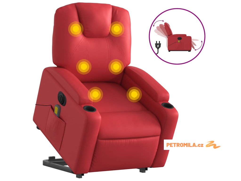Elektrické zvedací masážní polohovací křeslo červené umělá kůže