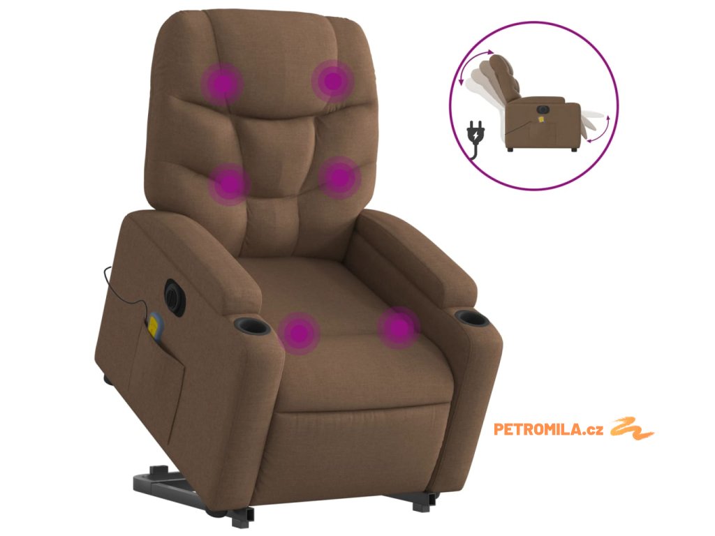 Elektrické zvedací masážní polohovací křeslo hnědé textil