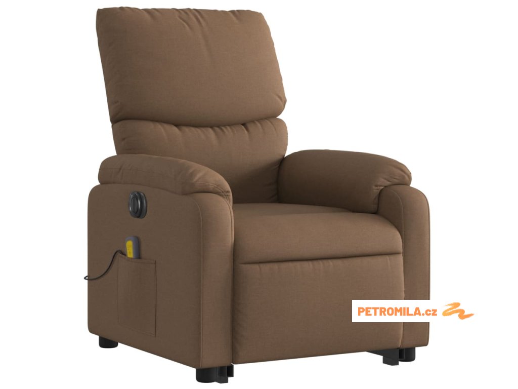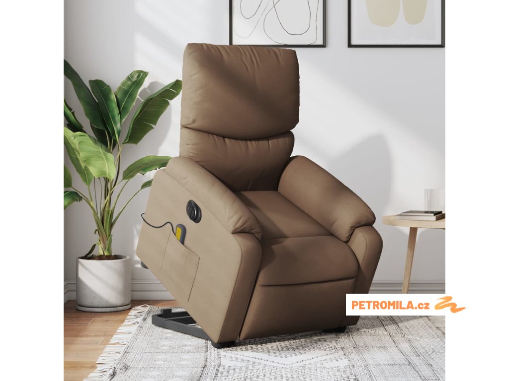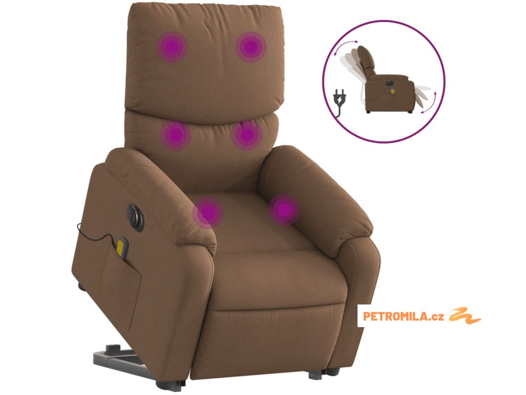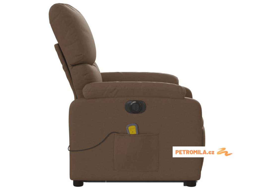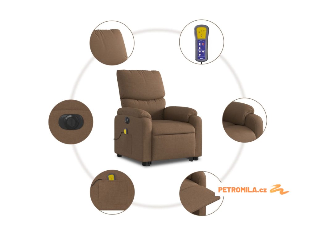Elektrické zvedací masážní polohovací křeslo hnědé textil