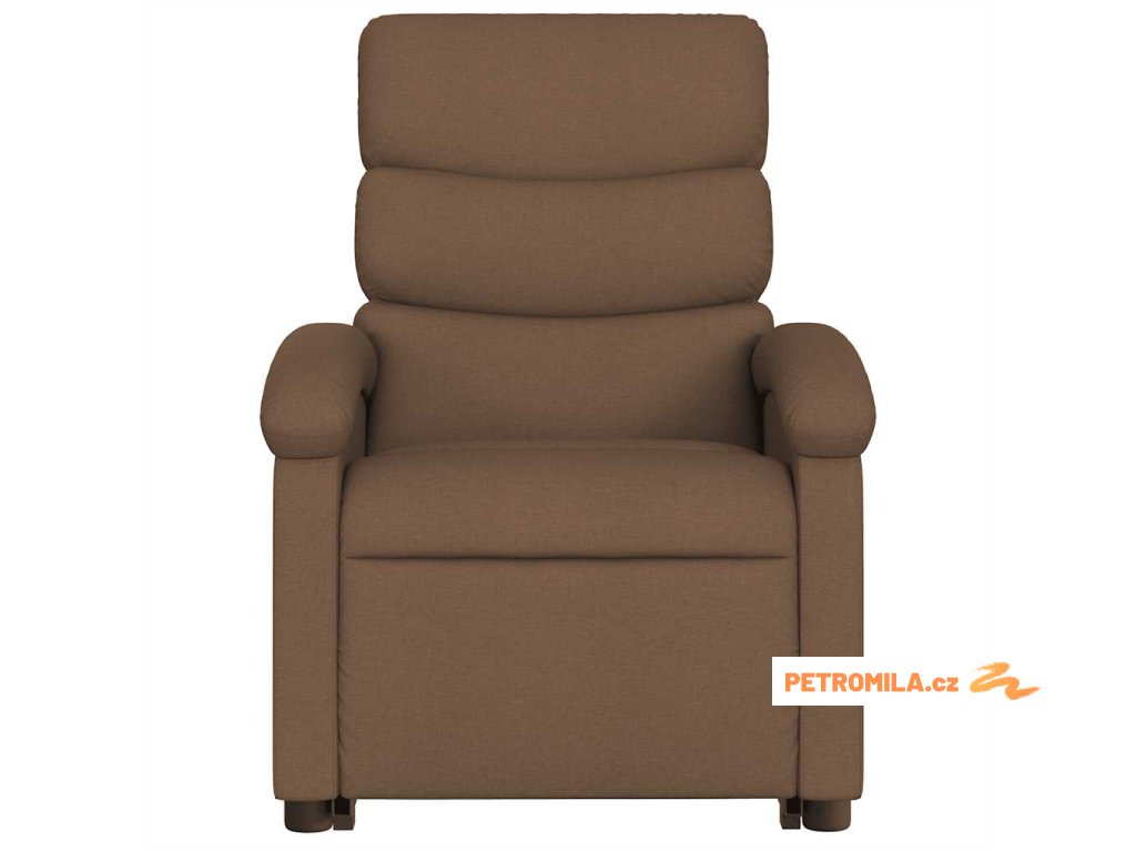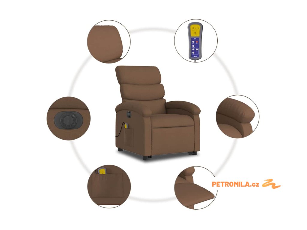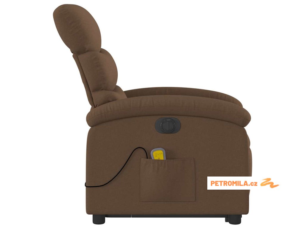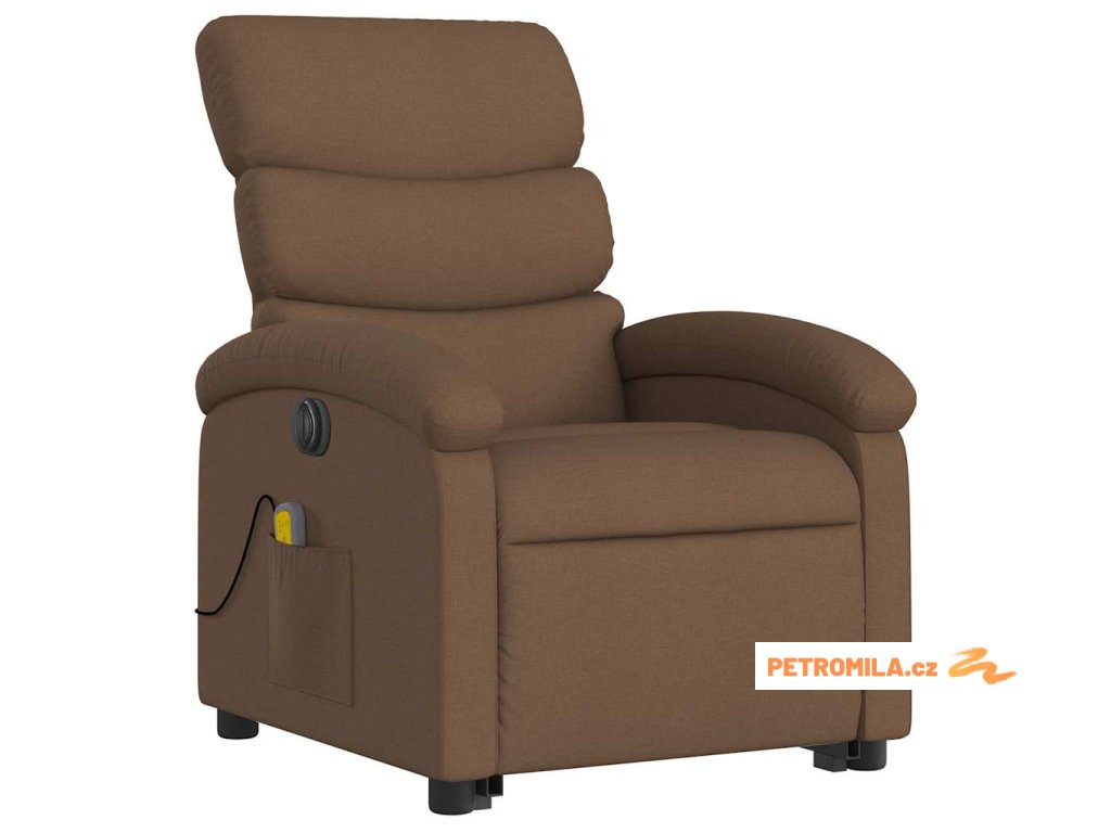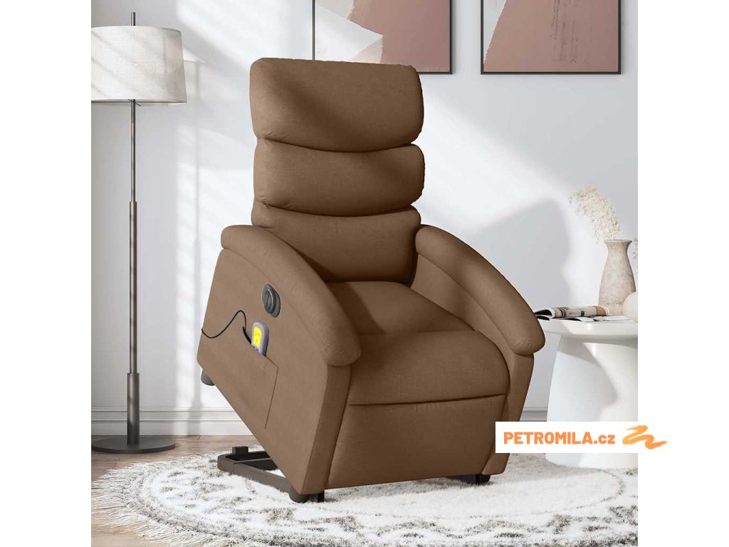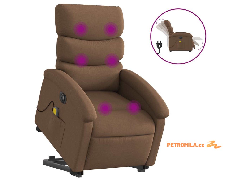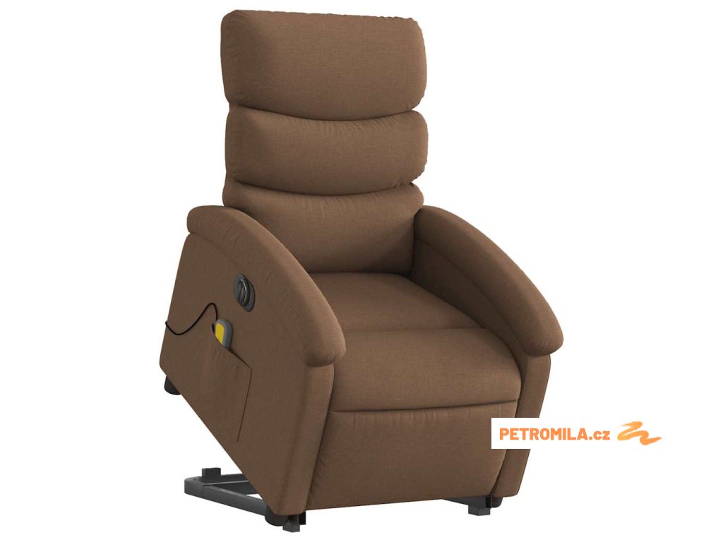 Elektrické zvedací masážní polohovací křeslo hnědé textil