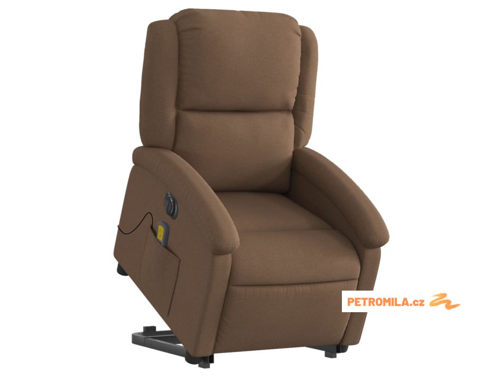 Elektrické zvedací masážní polohovací křeslo hnědé textil