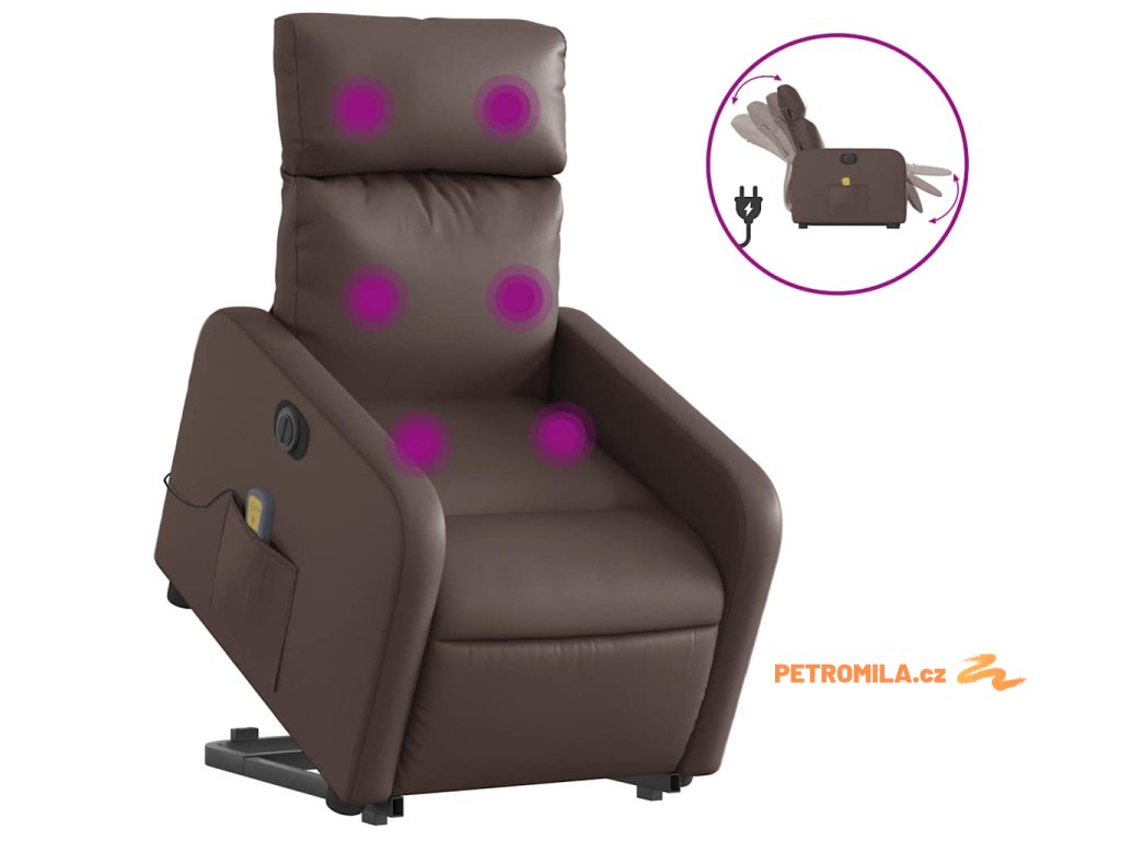 Elektrické zvedací masážní polohovací křeslo hnědé umělá kůže