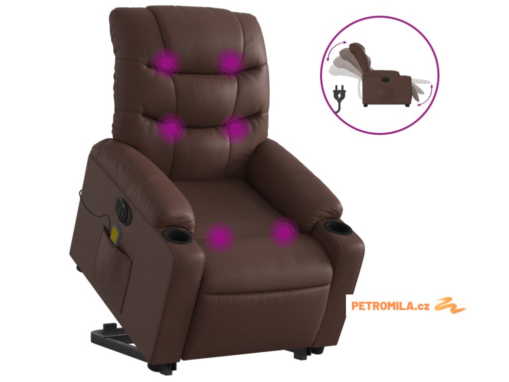 Zvedací masážní polohovací křeslo hnědé umělá kůže