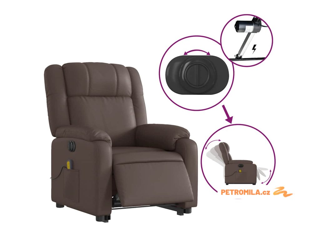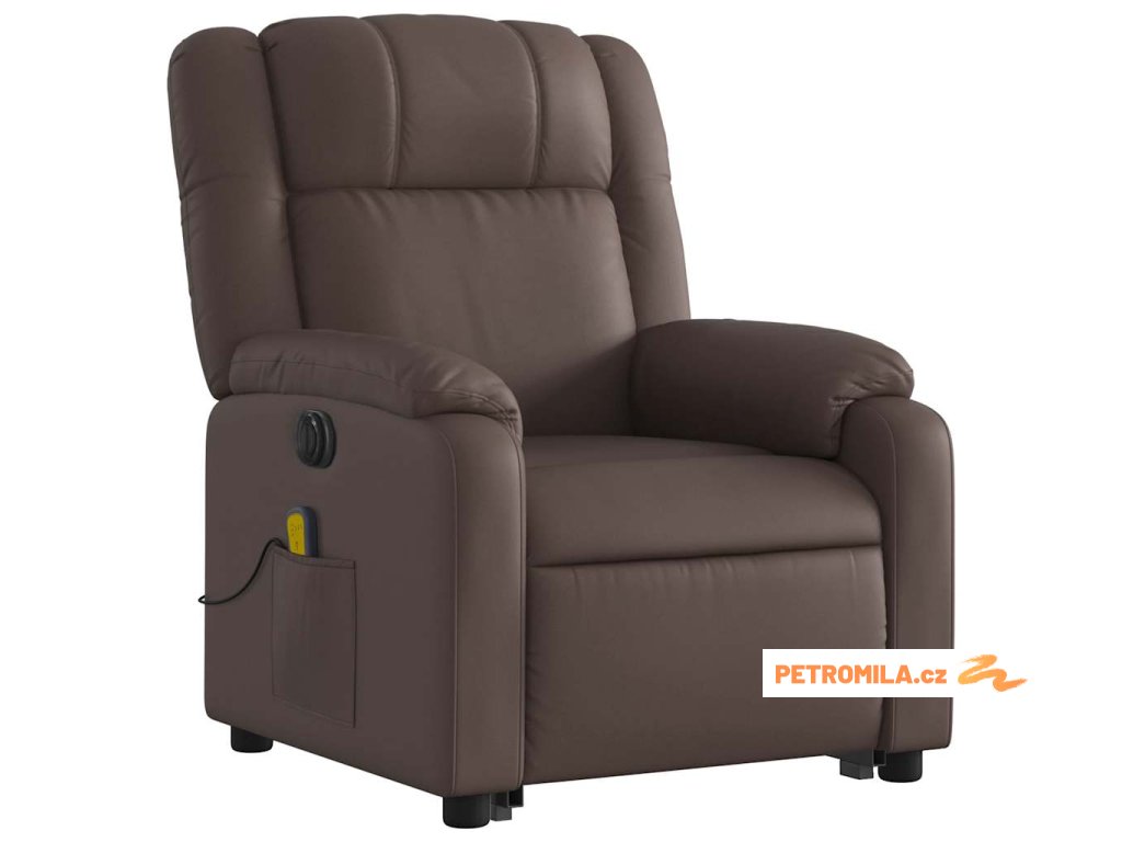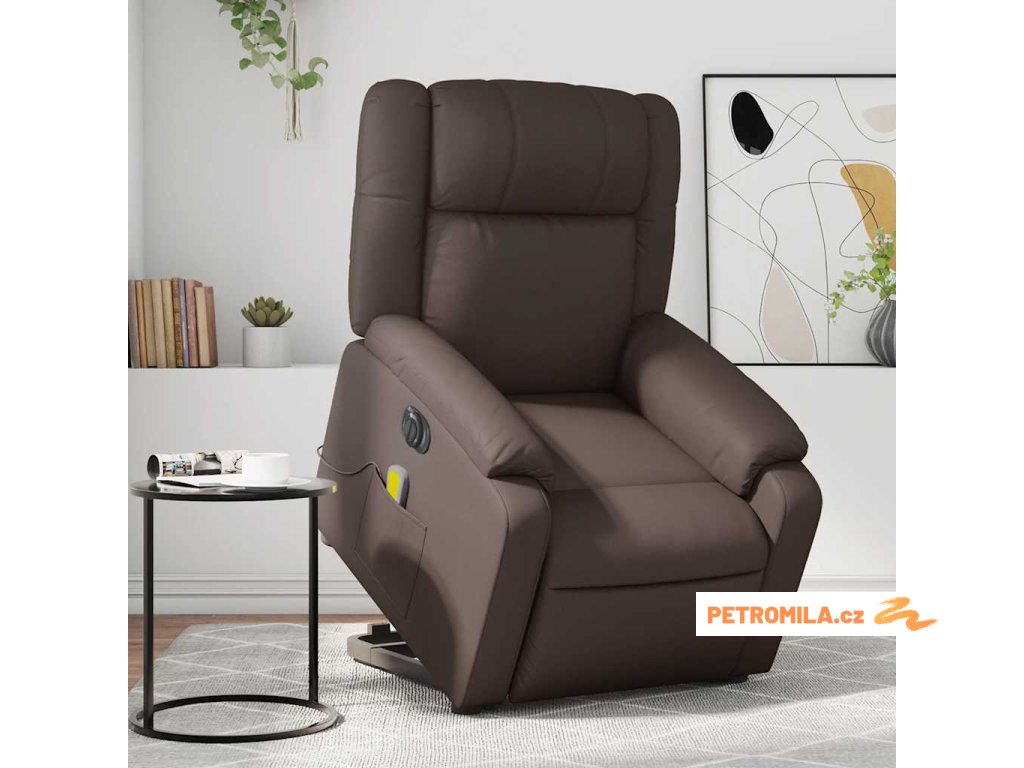Elektrické zvedací masážní polohovací křeslo hnědé umělá kůže