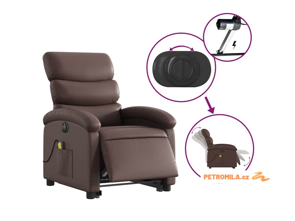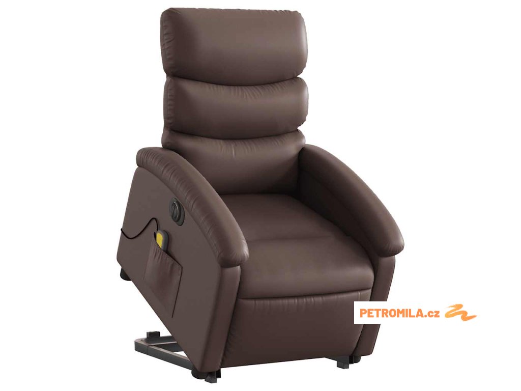 Elektrické zvedací masážní polohovací křeslo hnědé umělá kůže
