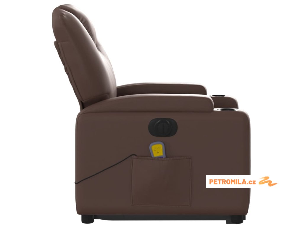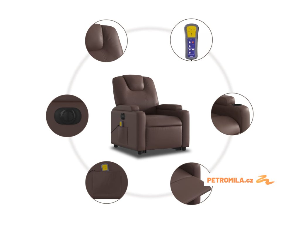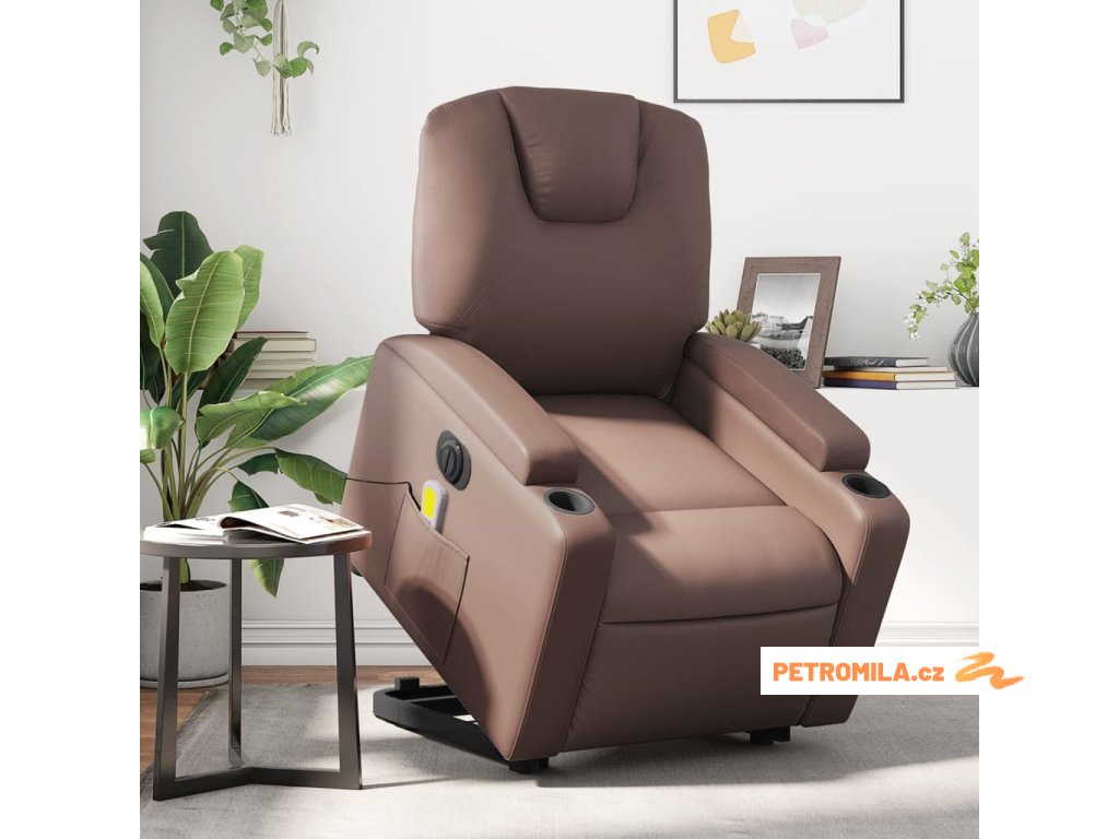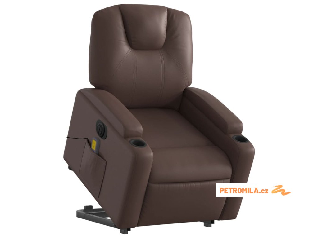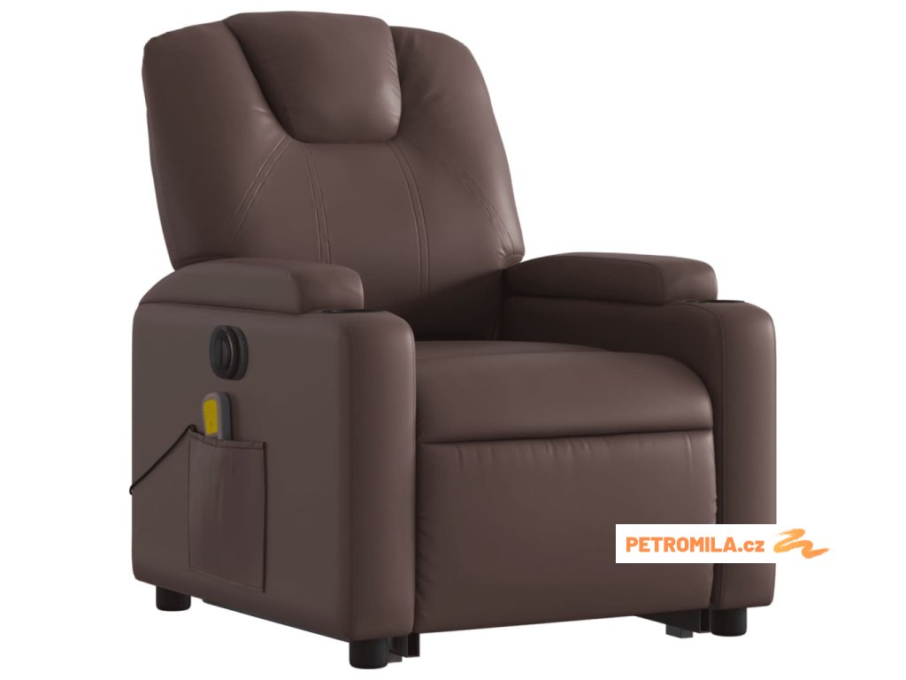 Elektrické zvedací masážní polohovací křeslo hnědé umělá kůže