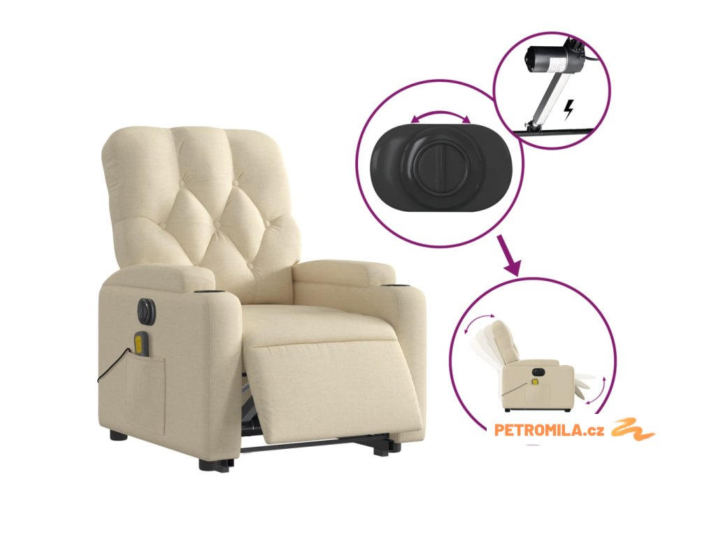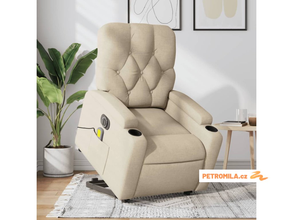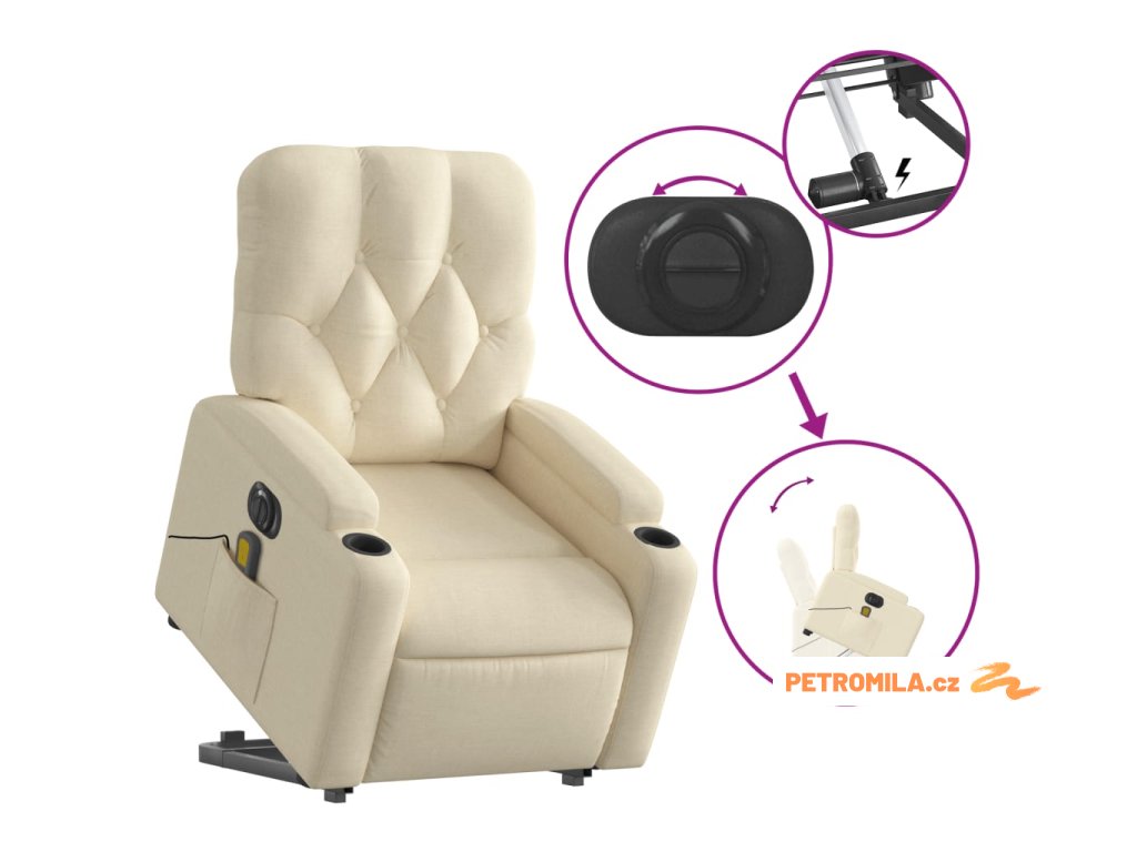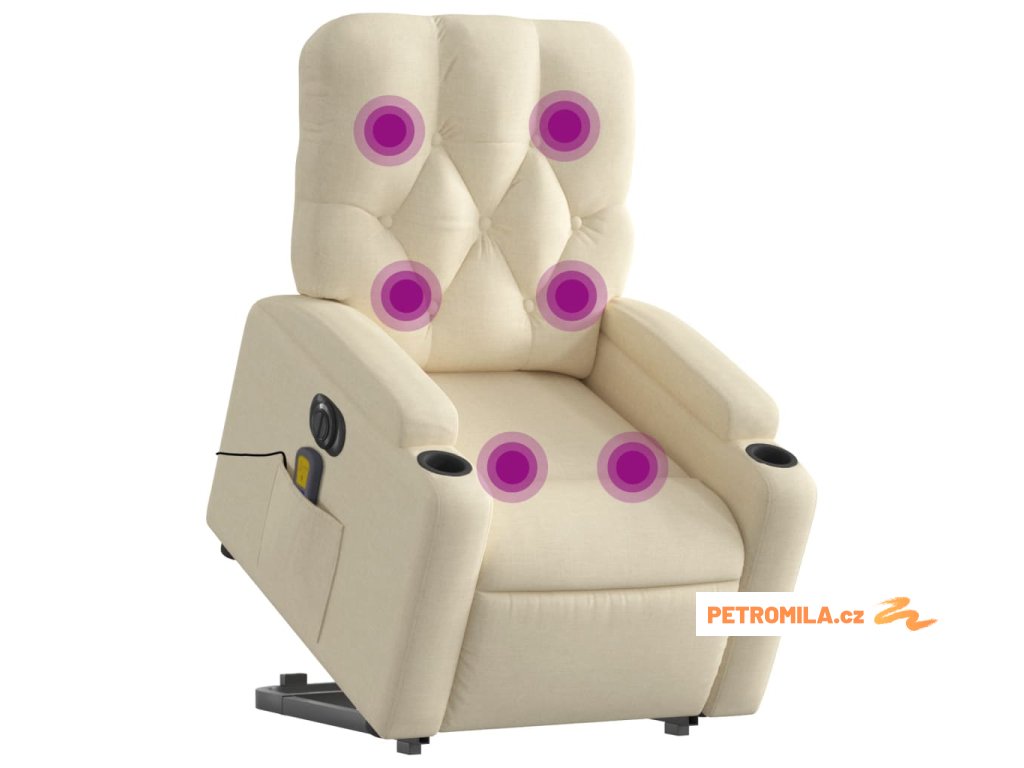 Elektrické zvedací masážní polohovací křeslo krémové textil
