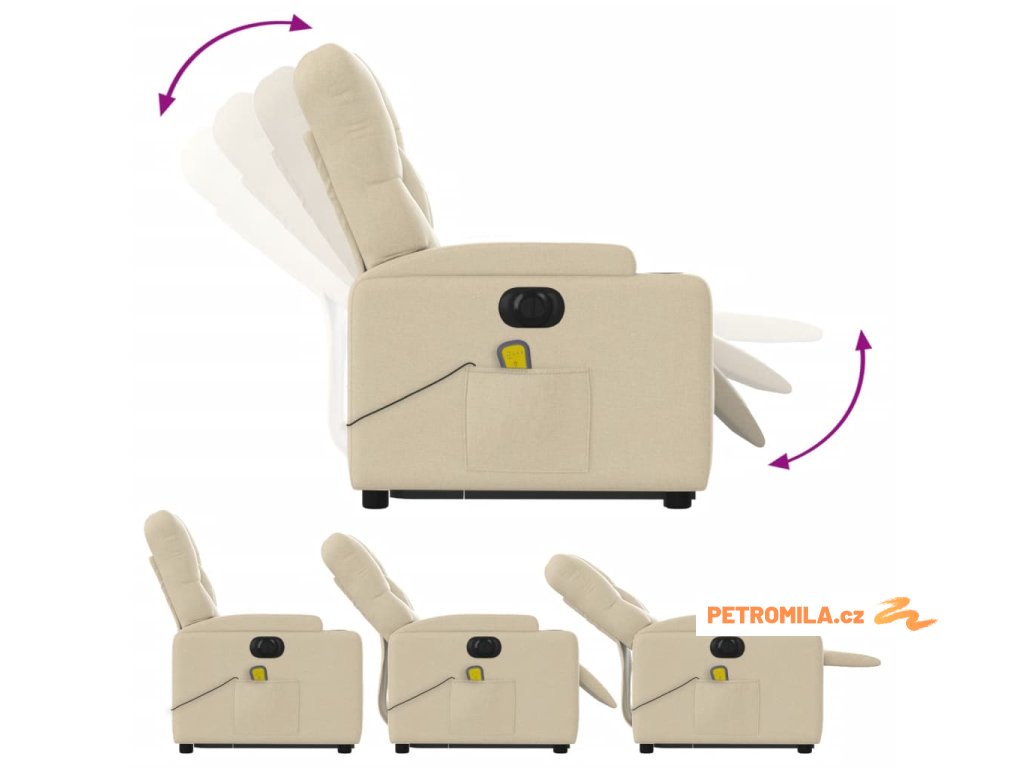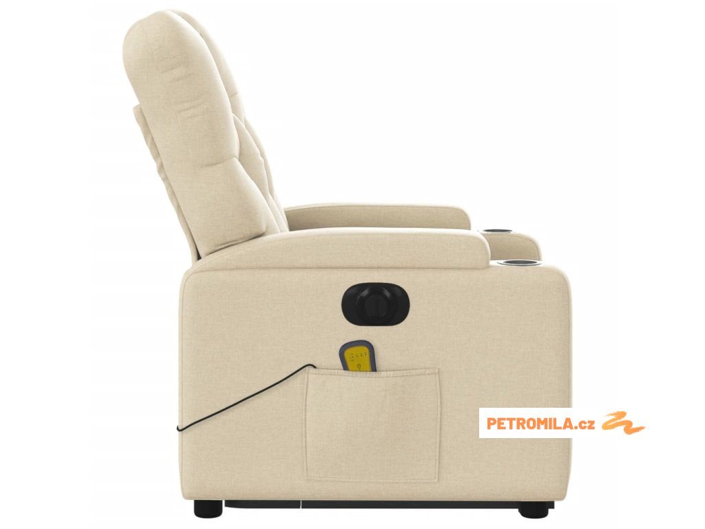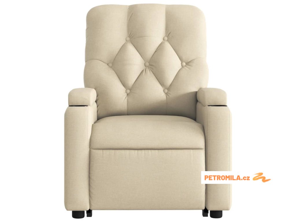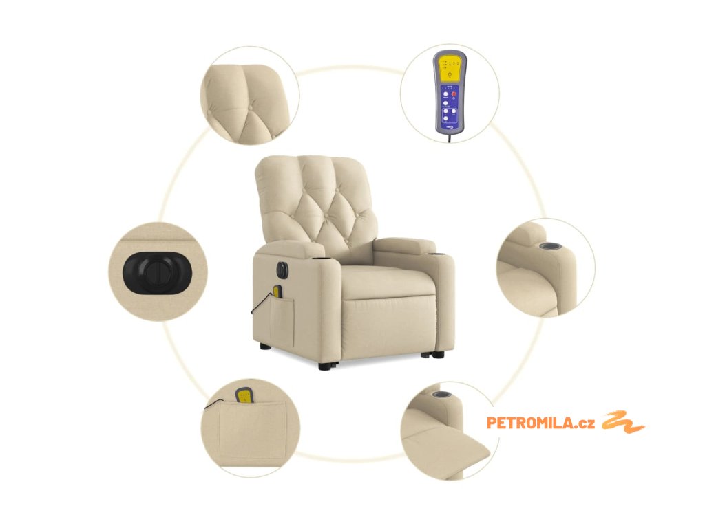 Elektrické zvedací masážní polohovací křeslo krémové textil