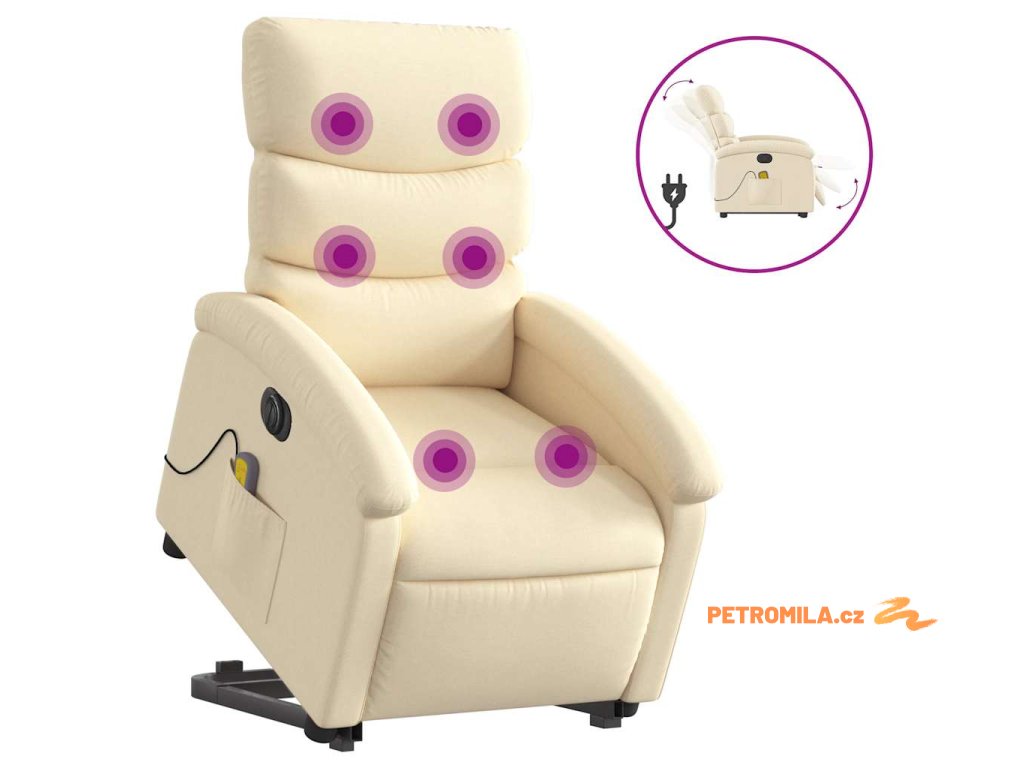 Elektrické zvedací masážní polohovací křeslo krémové textil