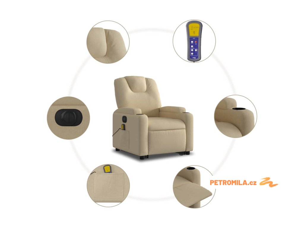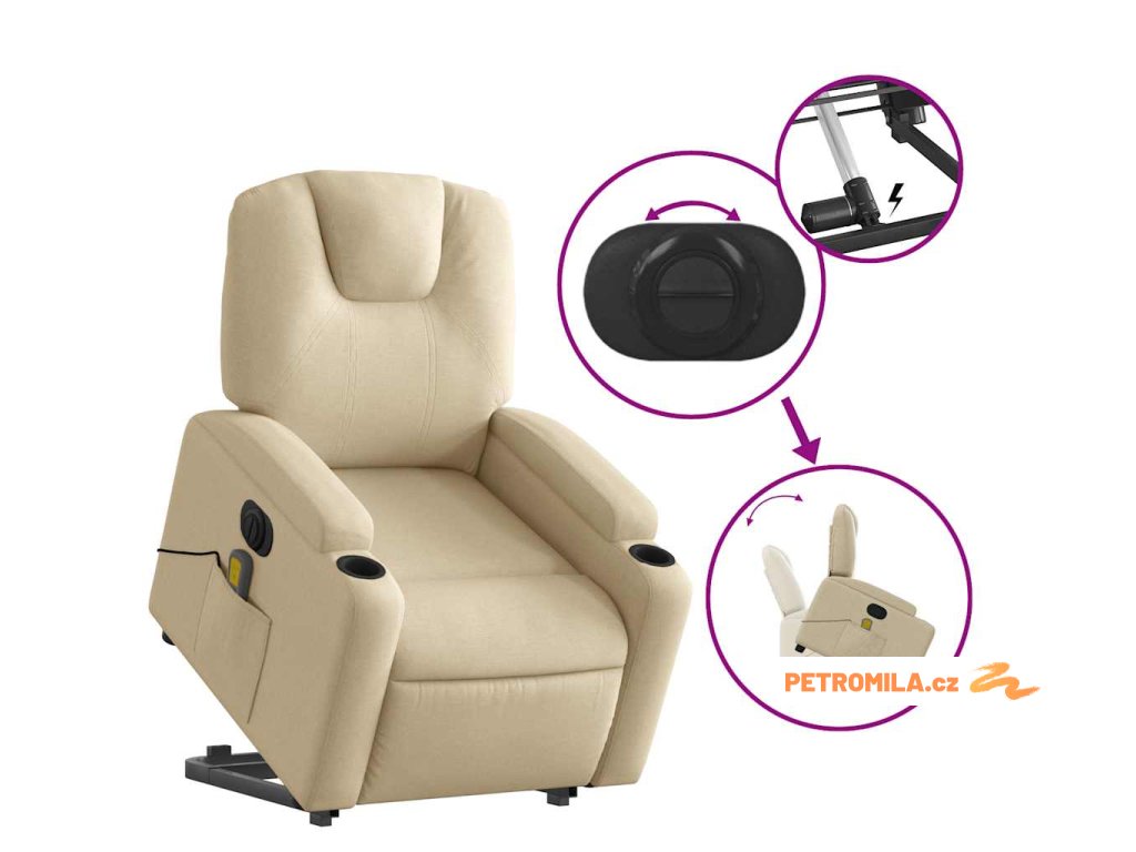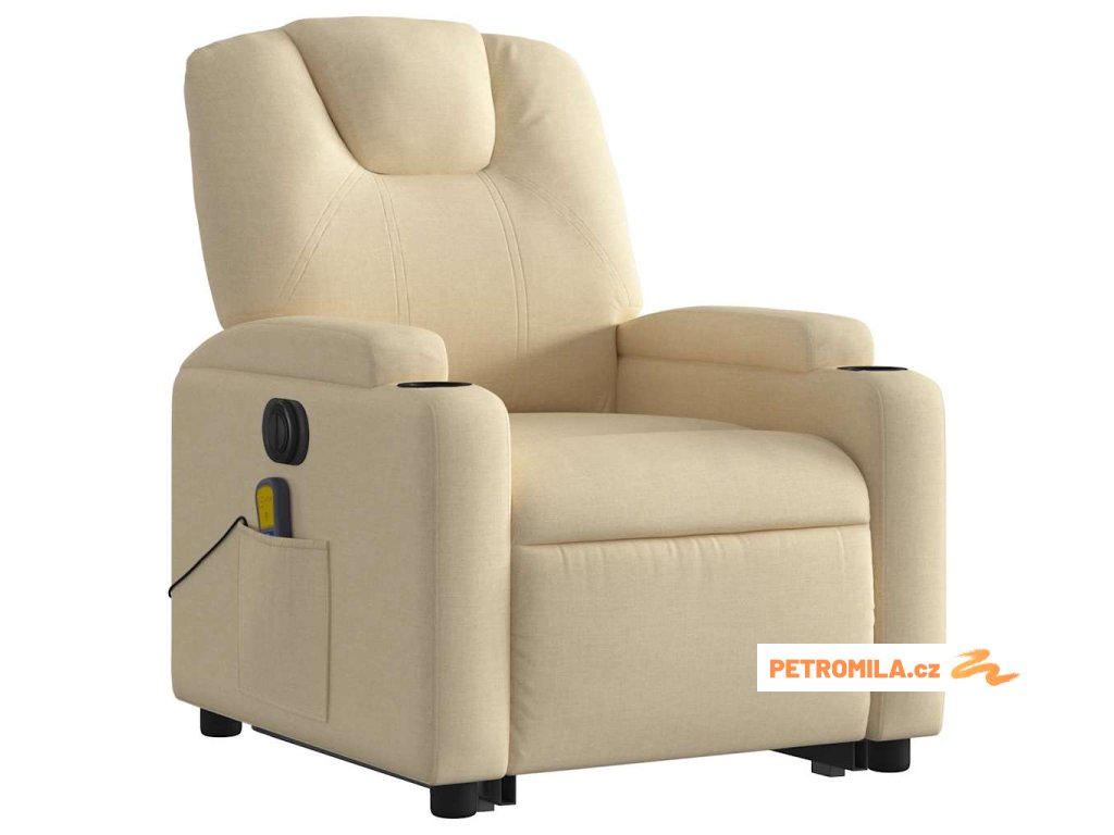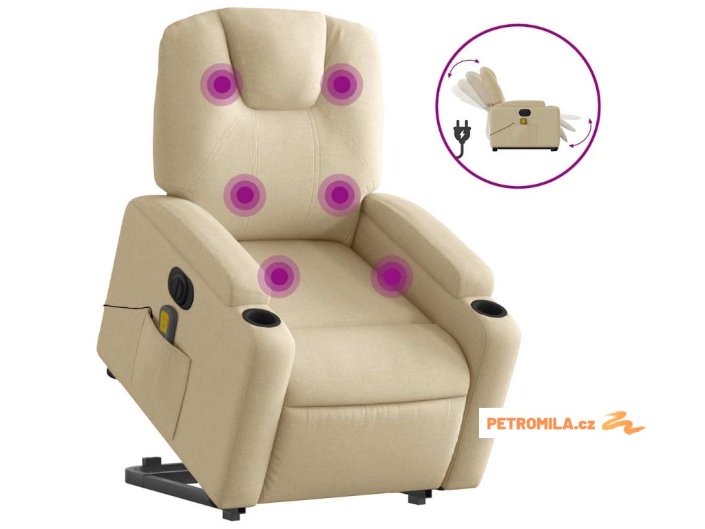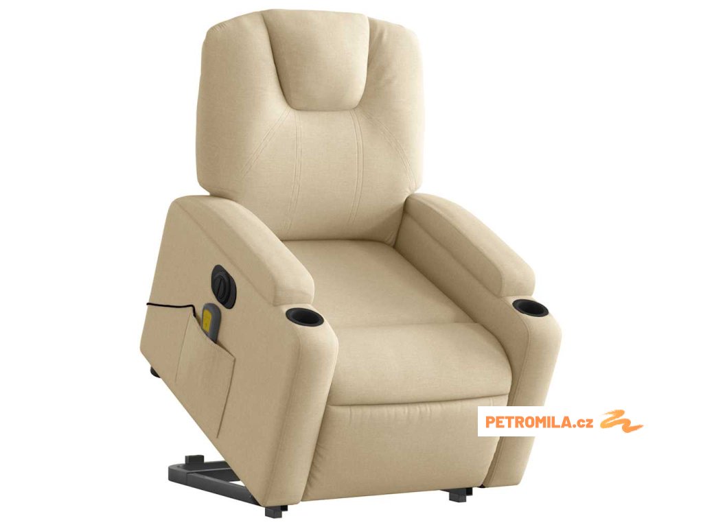 Elektrické zvedací masážní polohovací křeslo krémové textil