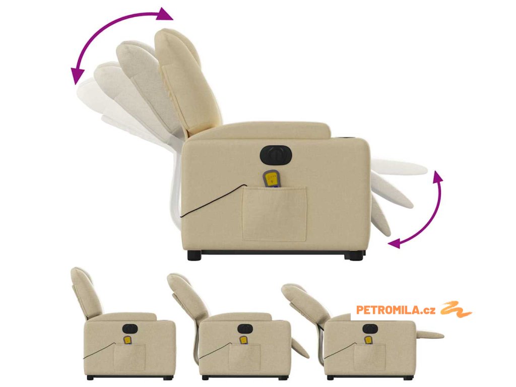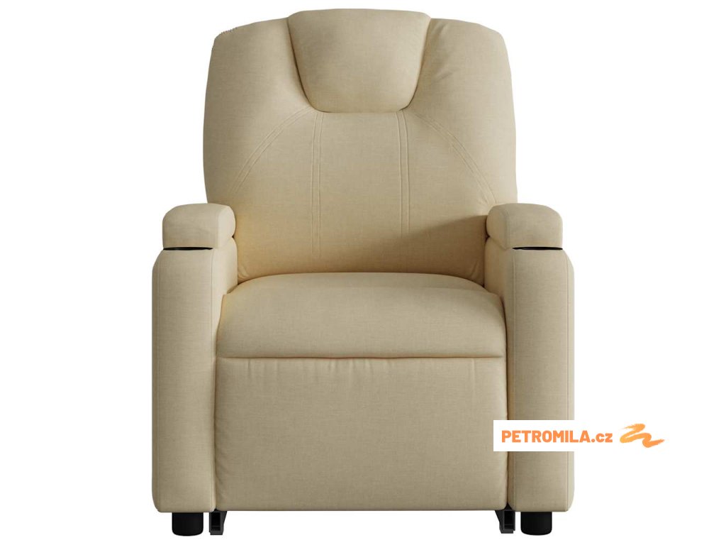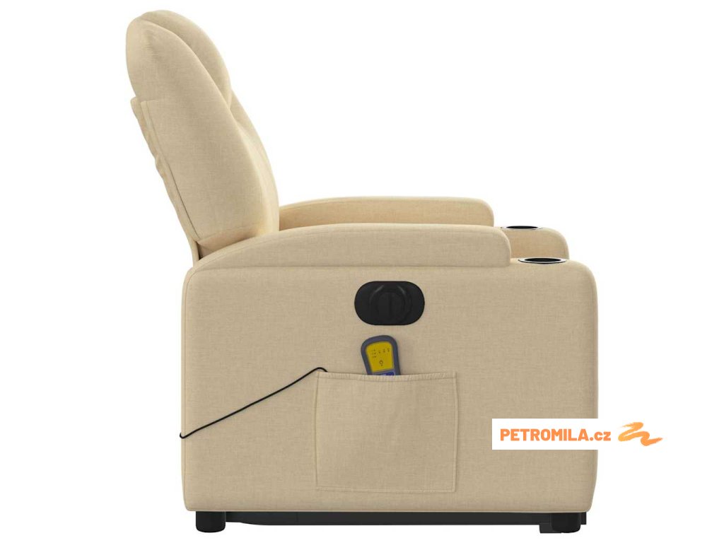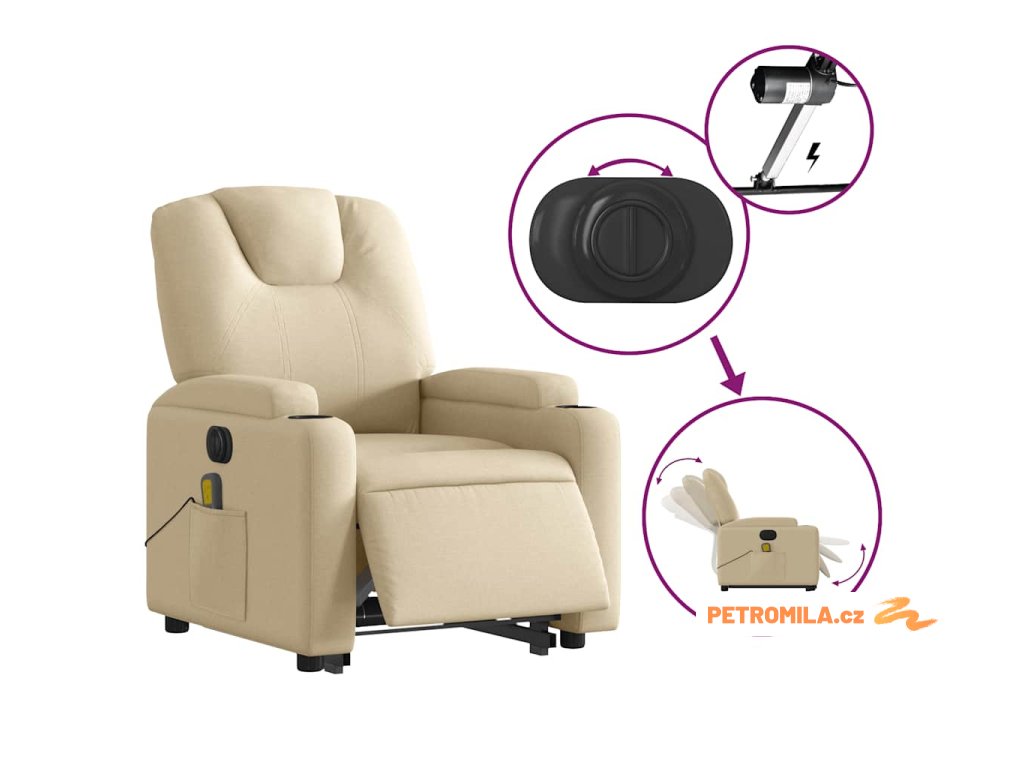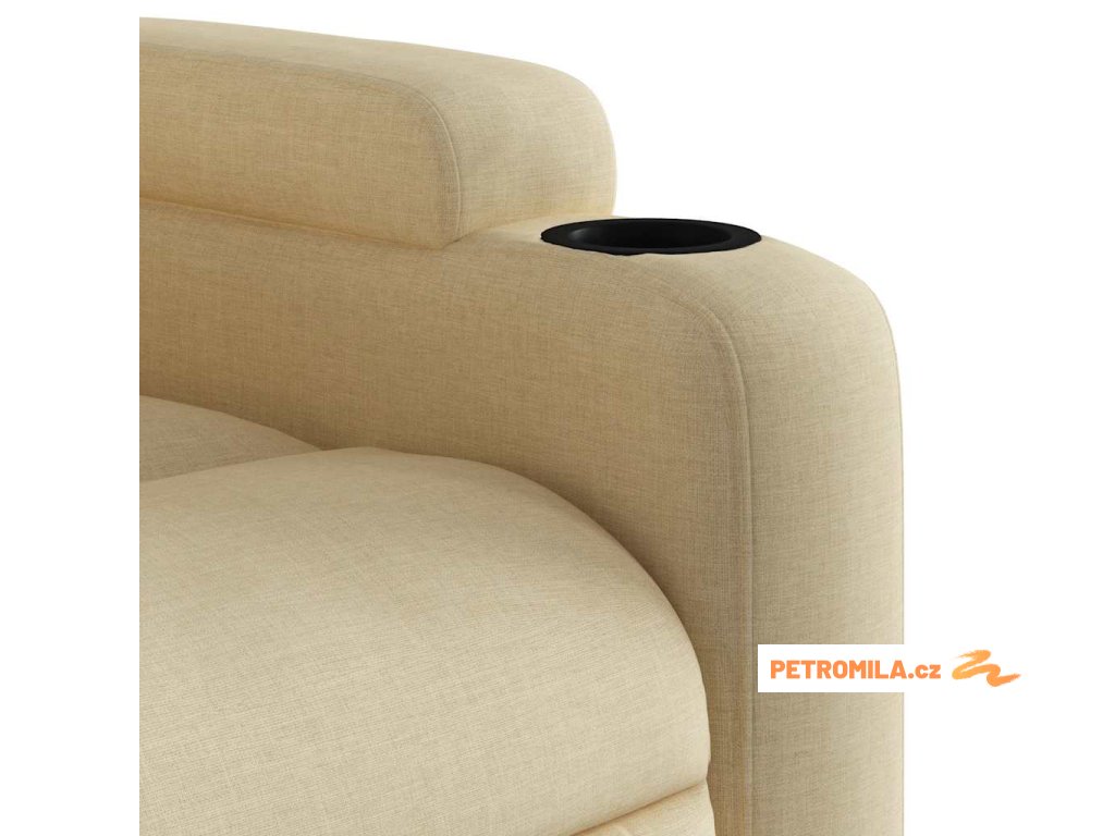 Elektrické zvedací masážní polohovací křeslo krémové textil