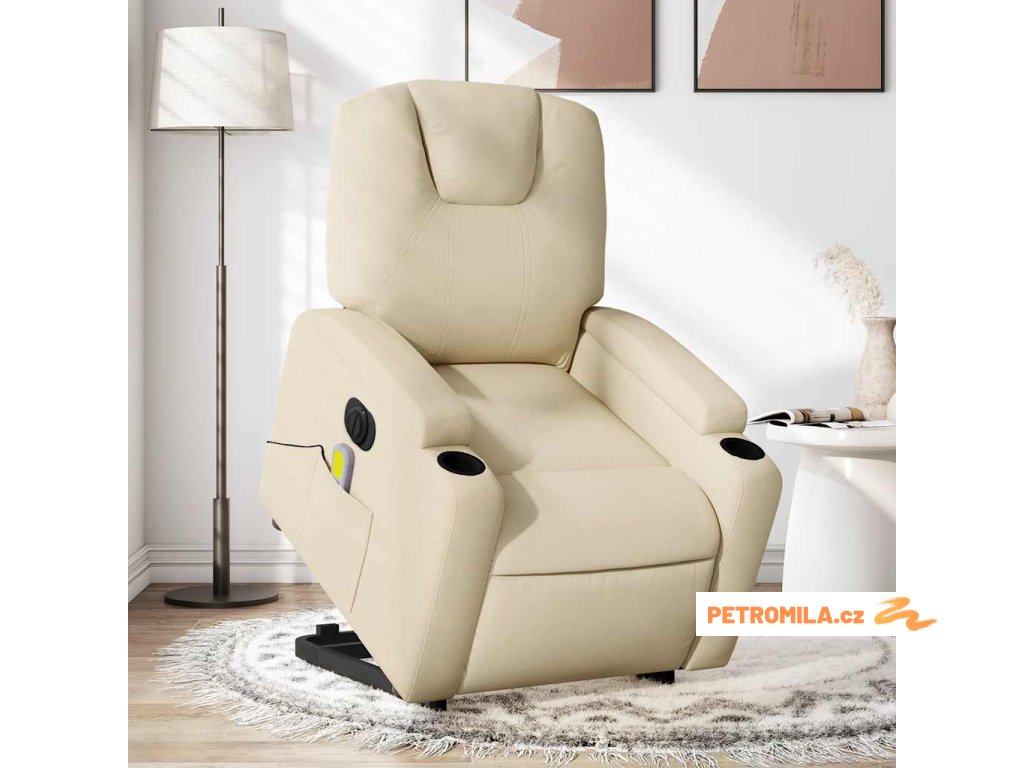 Elektrické zvedací masážní polohovací křeslo krémové umělá kůže