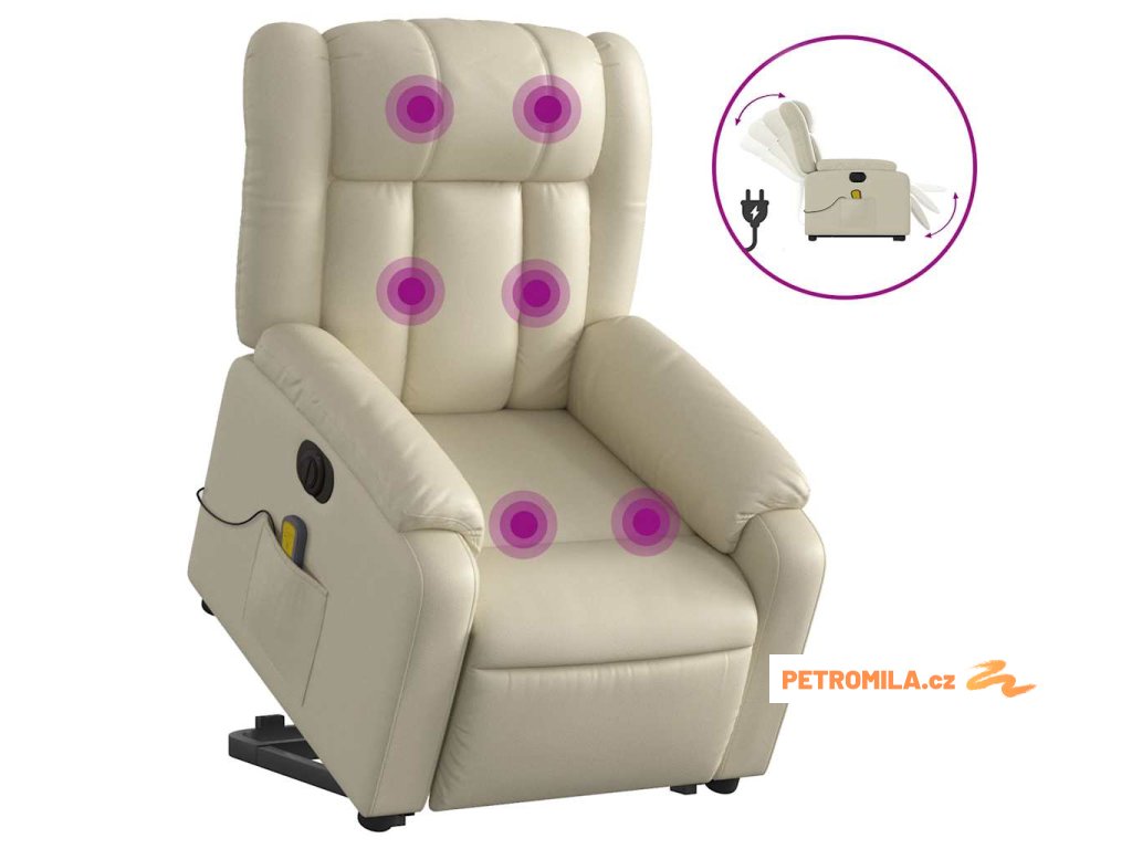 Elektrické zvedací masážní polohovací křeslo krémové umělá kůže