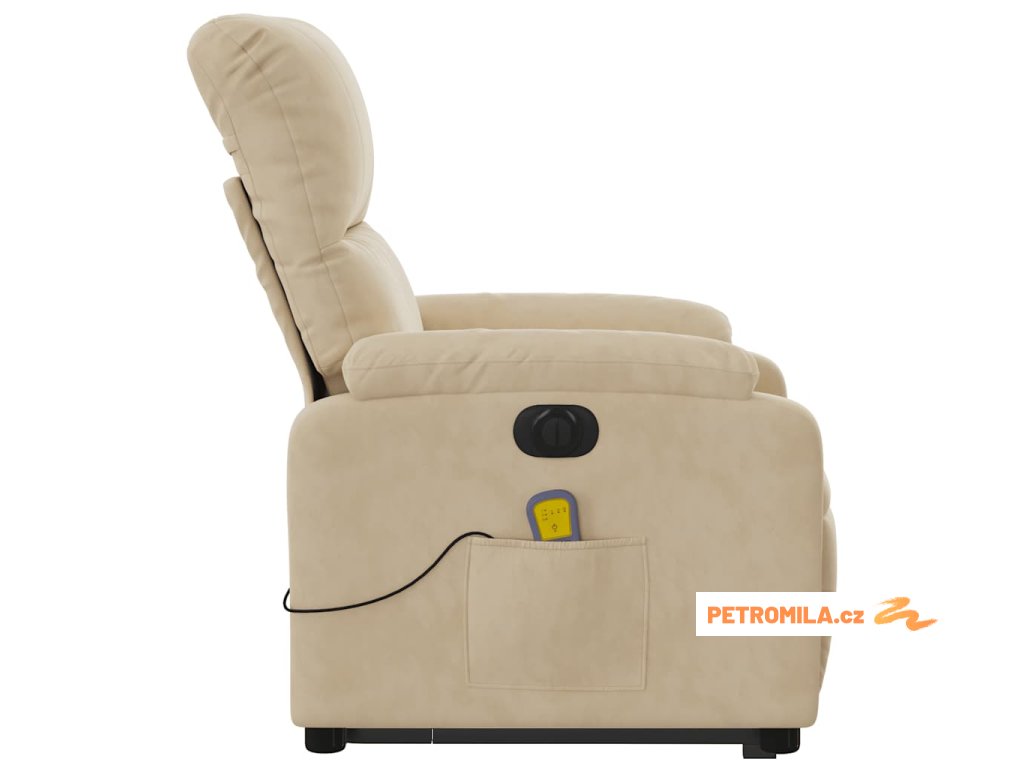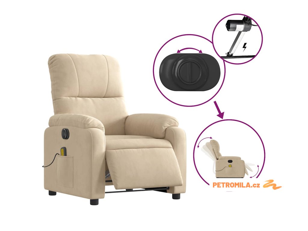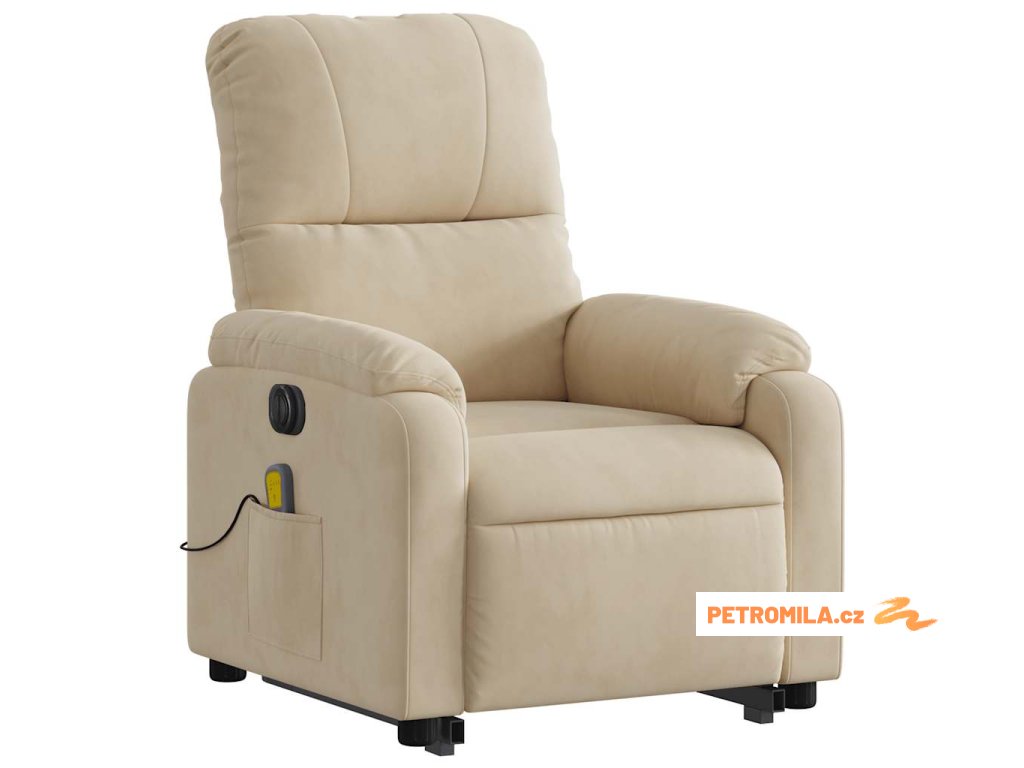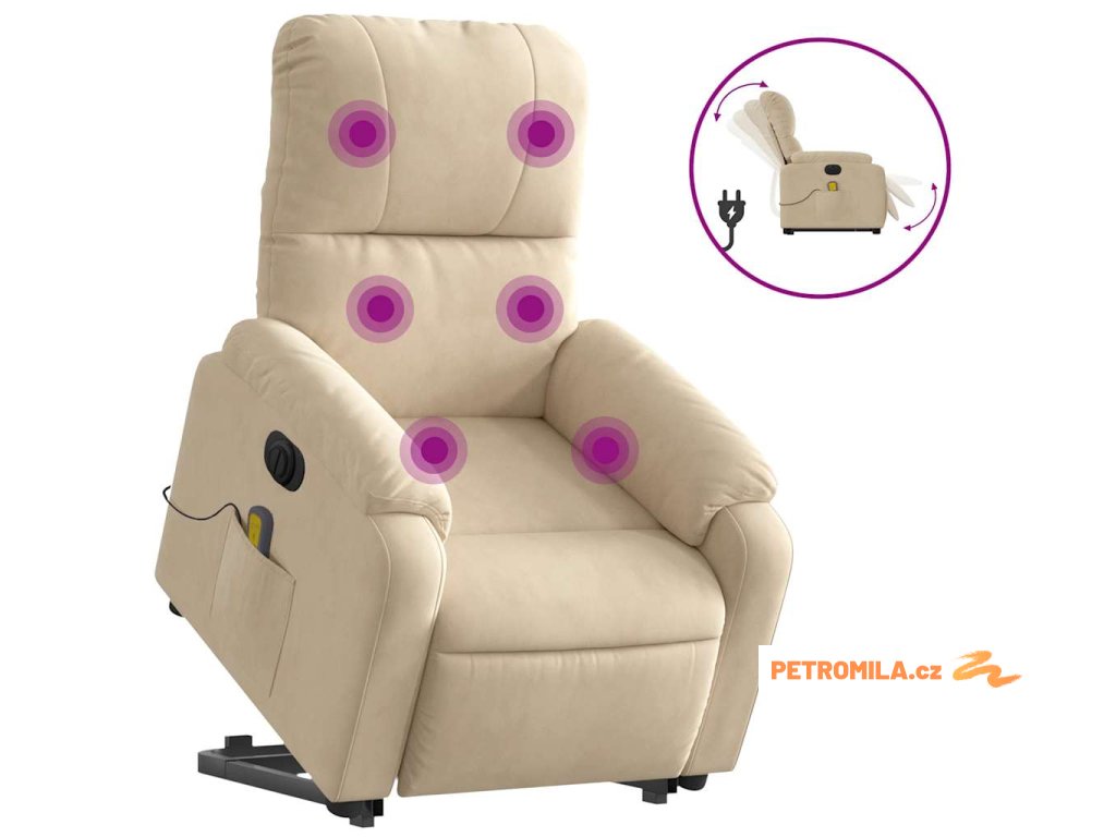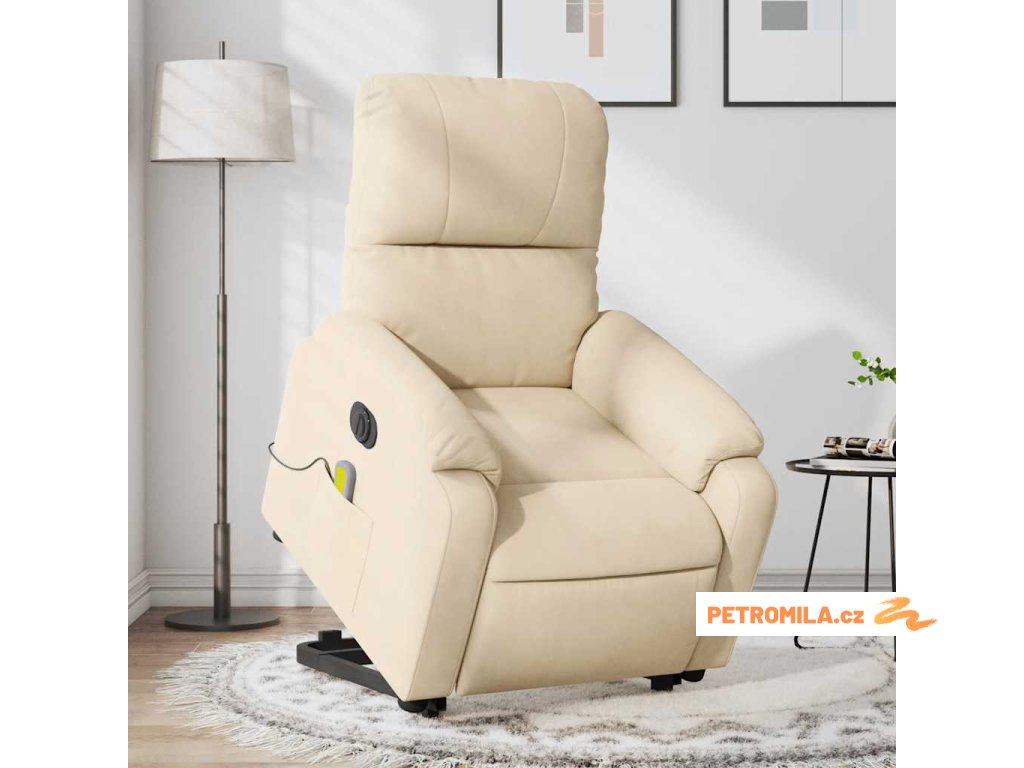 Elektrické zvedací masážní polohovací křeslo krémové textil