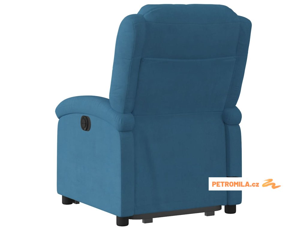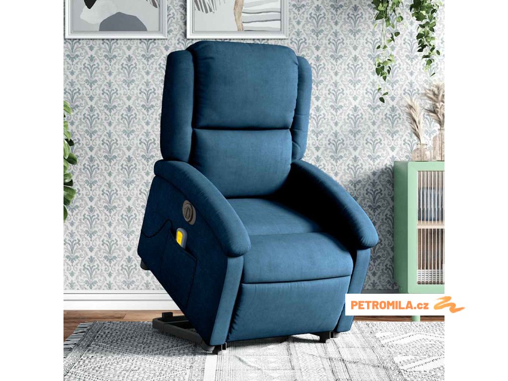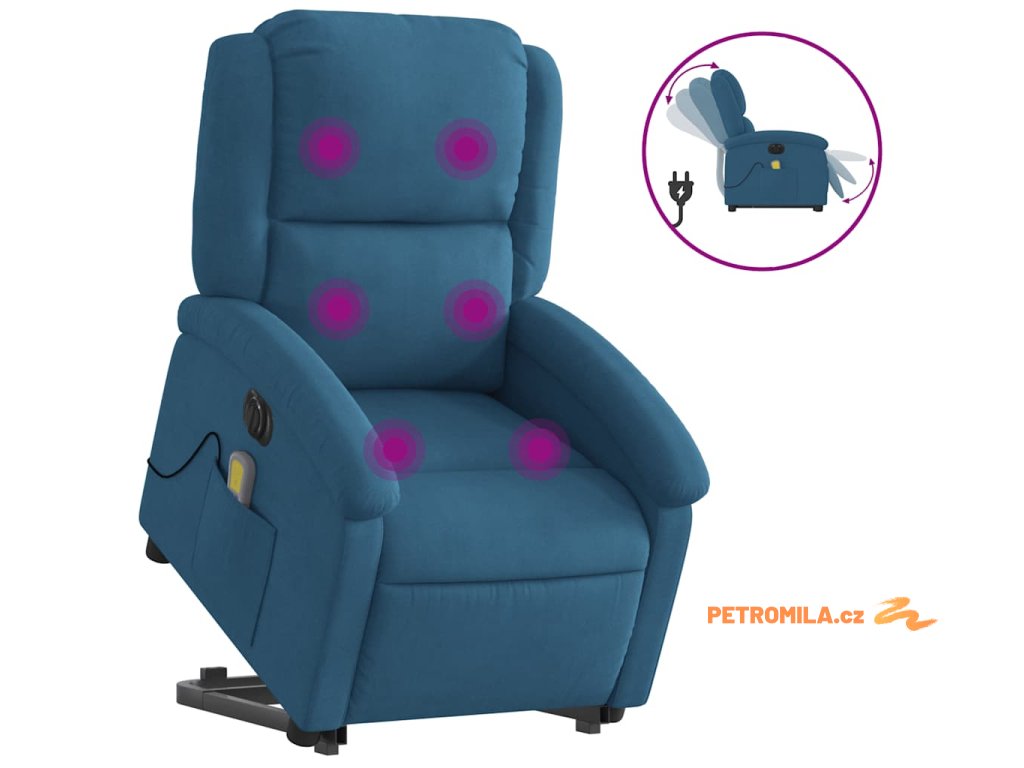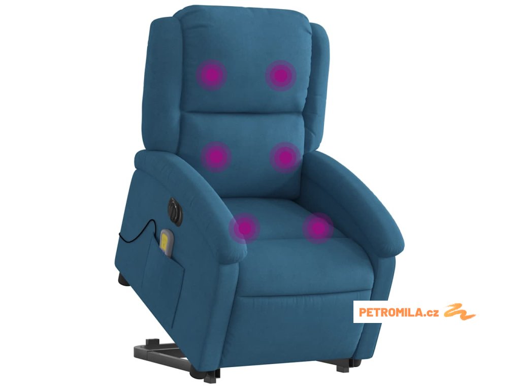 Elektrické zvedací masážní polohovací křeslo modré samet